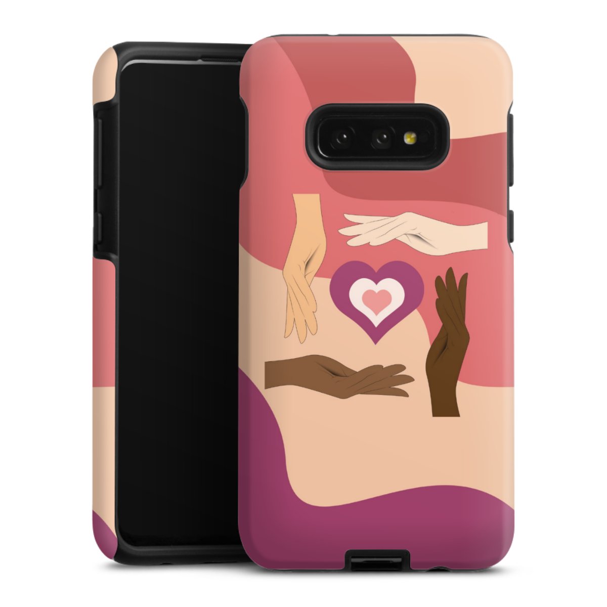 Product details Our most protective phone case combines the advantages of the Silicone and Premium Case: the flexible silicone core on the inside offers an extra shockabsorbing layer, protecting reliably against damages from dropping your phone. The longlasting, polycarbonate hard shell ensures additional stability and a brilliant print result. The surface of the 2,6 mm strong case feels smooth offering a comfortable grip. The case is available with a matt and glossy finish.