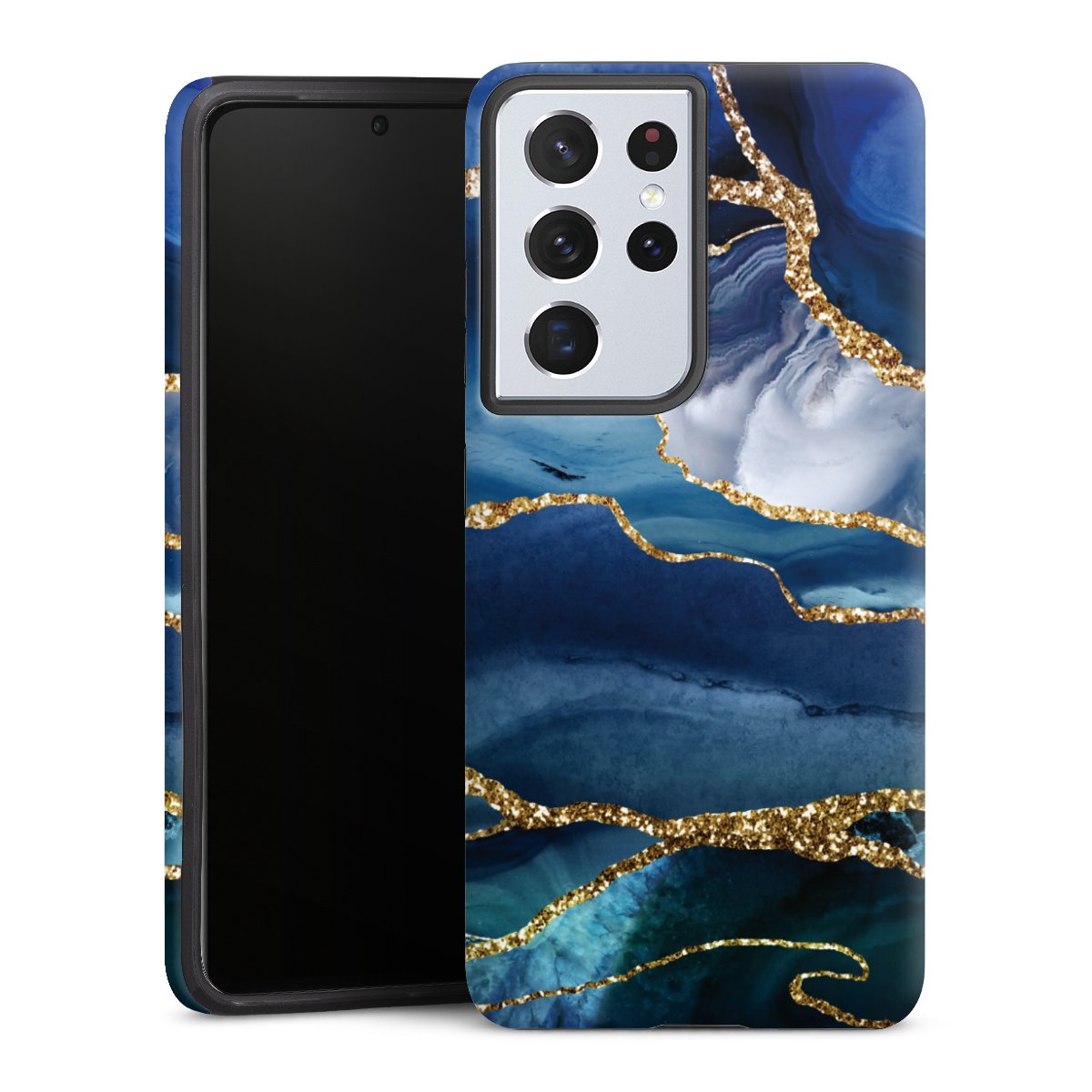 Blue Marble Gold Glitter Look