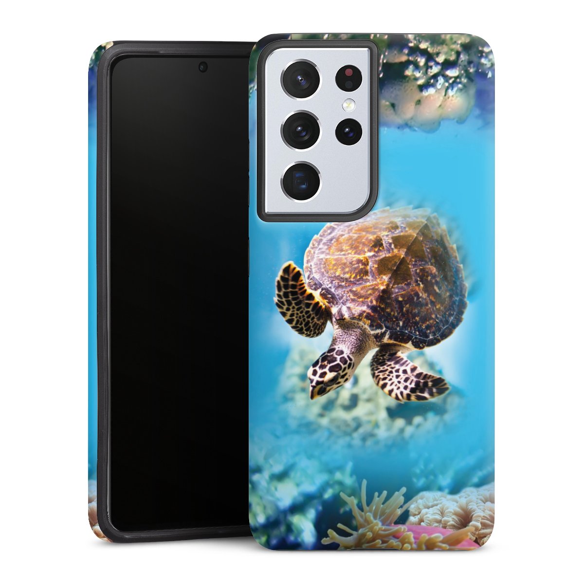 Print technology For our Tough Case we are using our specially advanced and longlasting sublimation print. This refined technology excels through its highquality, brilliant and pin-sharp print. The printable area covers the entire case: backside, frame and edges are fully printed. The silicone core remains unprinted. Choose one of our exklusive, pre-made shop designs or let your creativity shine and create your very own unique design with your pictures, overlays and text.