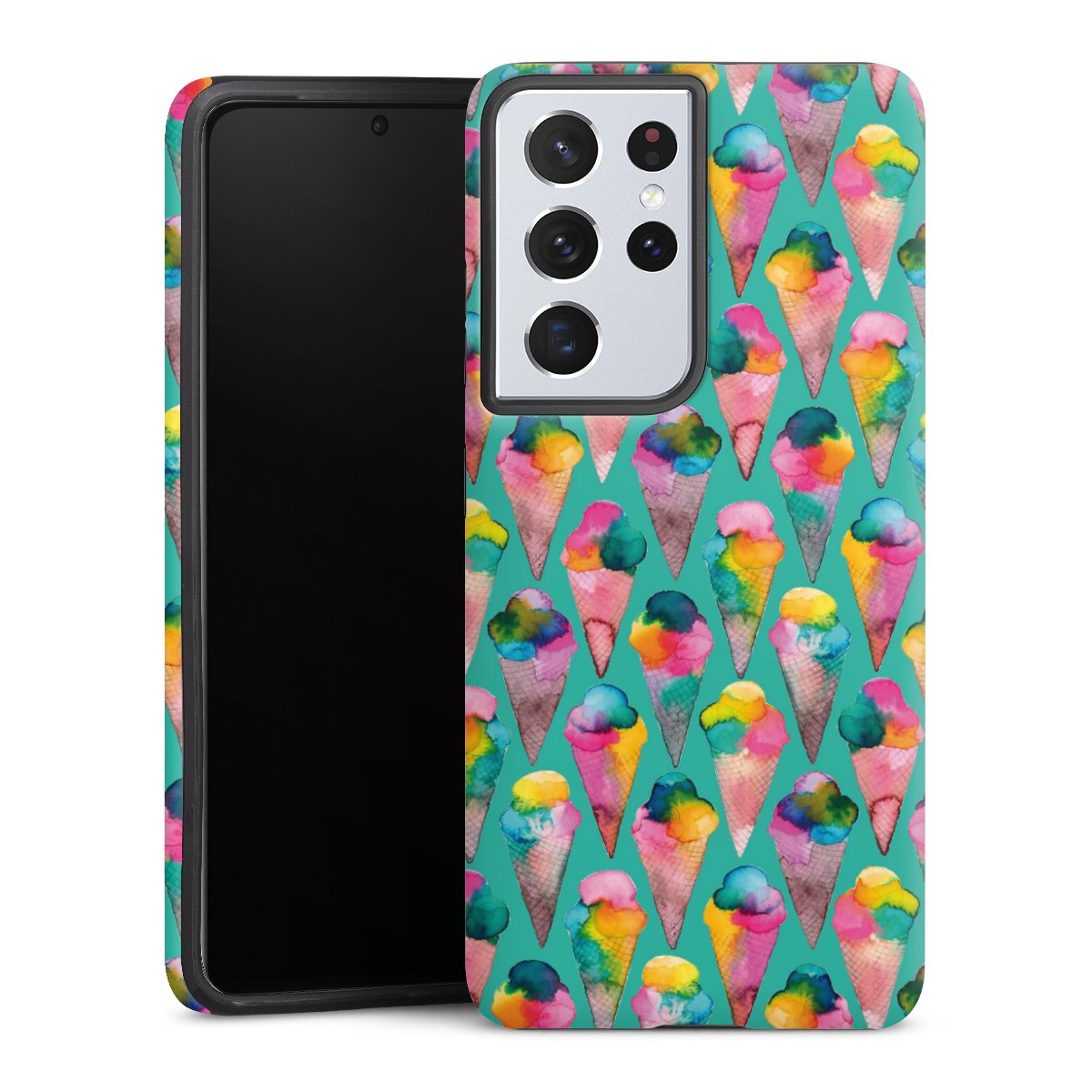 Print technology For our Tough Case we are using our specially advanced and longlasting sublimation print. This refined technology excels through its highquality, brilliant and pin-sharp print. The printable area covers the entire case: backside, frame and edges are fully printed. The silicone core remains unprinted. Choose one of our exklusive, pre-made shop designs or let your creativity shine and create your very own unique design with your pictures, overlays and text.