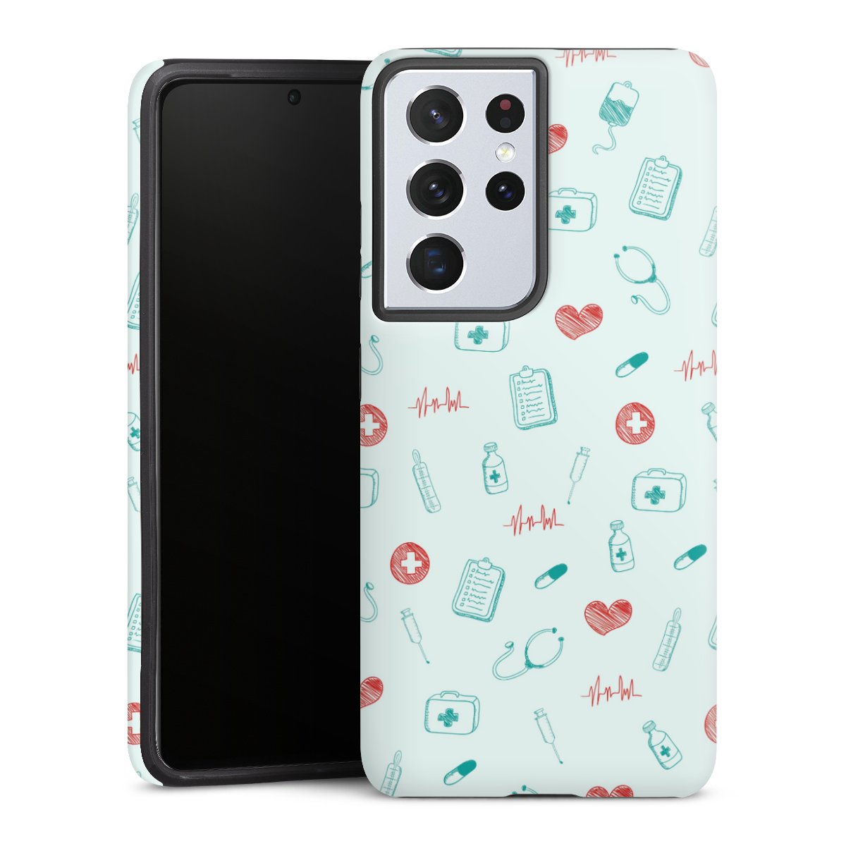 Product details Our most protective phone case combines the advantages of the Silicone and Premium Case: the flexible silicone core on the inside offers an extra shockabsorbing layer, protecting reliably against damages from dropping your phone. The longlasting, polycarbonate hard shell ensures additional stability and a brilliant print result. The surface of the 2,6 mm strong case feels smooth offering a comfortable grip. The case is available with a matt and glossy finish.