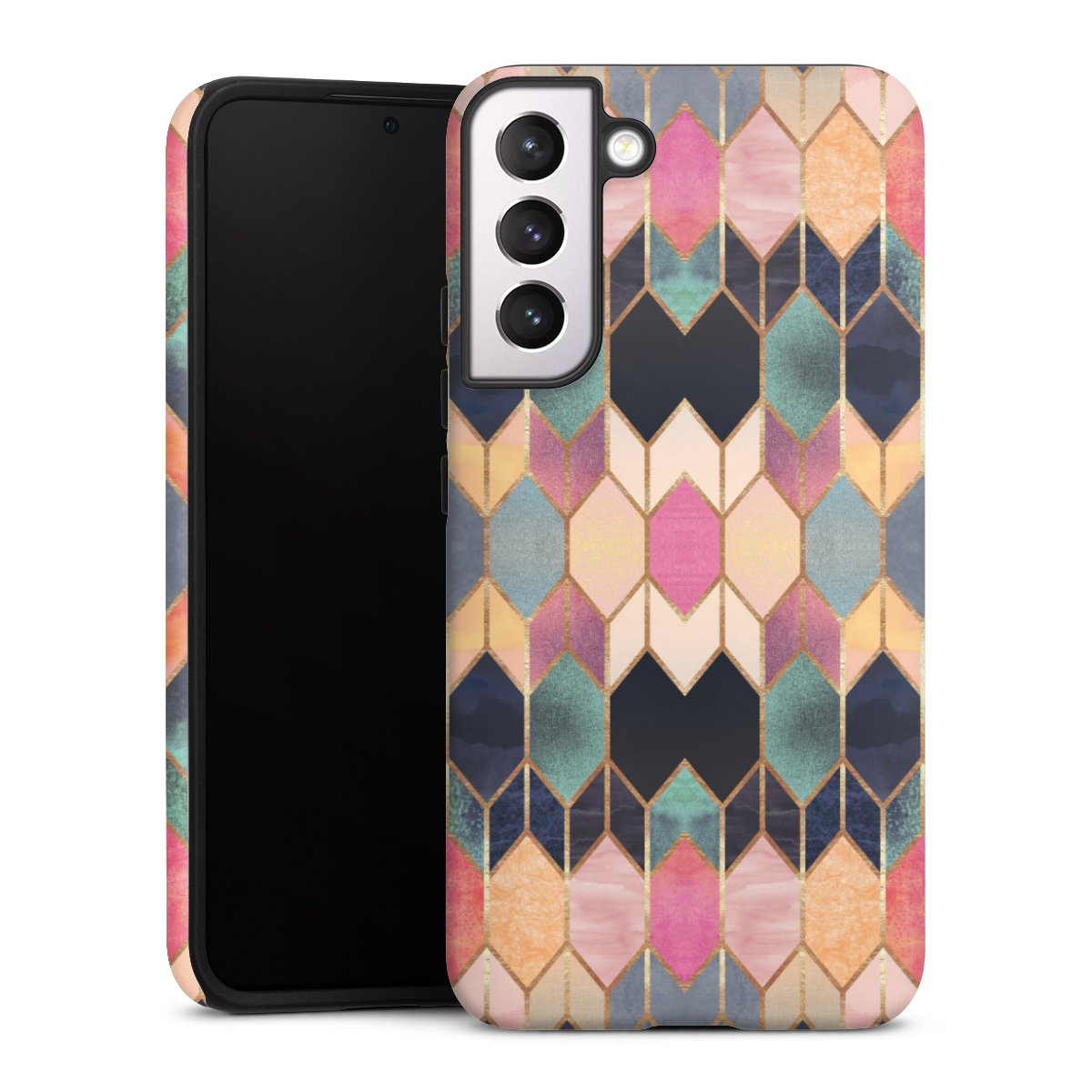 Print technology For our Tough Case we are using our specially advanced and longlasting sublimation print. This refined technology excels through its highquality, brilliant and pin-sharp print. The printable area covers the entire case: backside, frame and edges are fully printed. The silicone core remains unprinted. Choose one of our exklusive, pre-made shop designs or let your creativity shine and create your very own unique design with your pictures, overlays and text.
