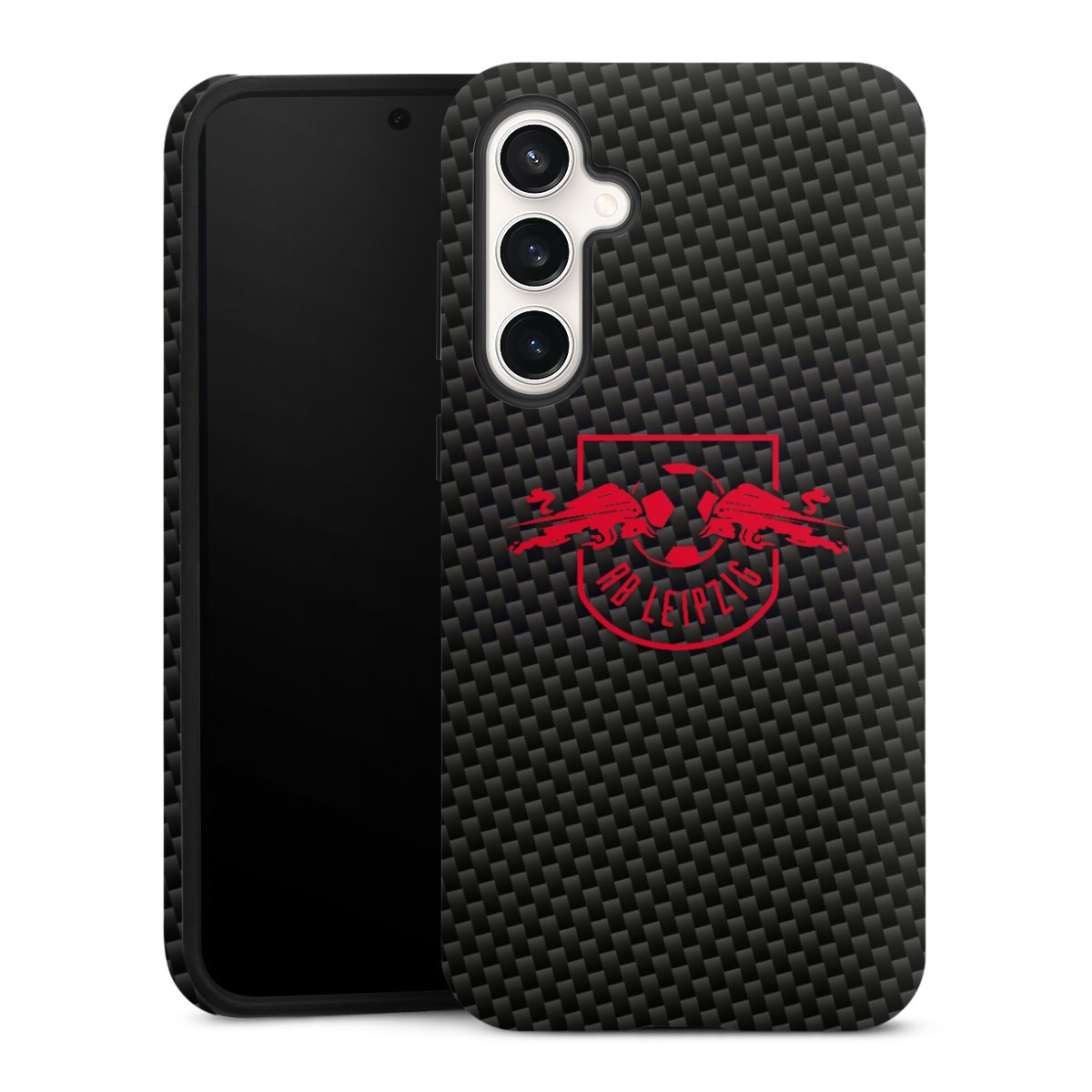 Red RB Leipzig logo on carbon look