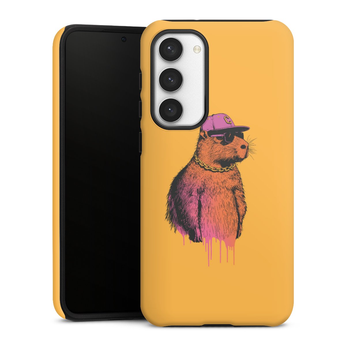 Product details Our most protective phone case combines the advantages of the Silicone and Premium Case: the flexible silicone core on the inside offers an extra shockabsorbing layer, protecting reliably against damages from dropping your phone. The longlasting, polycarbonate hard shell ensures additional stability and a brilliant print result. The surface of the 2,6 mm strong case feels smooth offering a comfortable grip. The case is available with a matt and glossy finish.