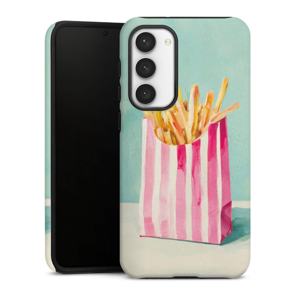 Product details Our most protective phone case combines the advantages of the Silicone and Premium Case: the flexible silicone core on the inside offers an extra shockabsorbing layer, protecting reliably against damages from dropping your phone. The longlasting, polycarbonate hard shell ensures additional stability and a brilliant print result. The surface of the 2,6 mm strong case feels smooth offering a comfortable grip. The case is available with a matt and glossy finish.
