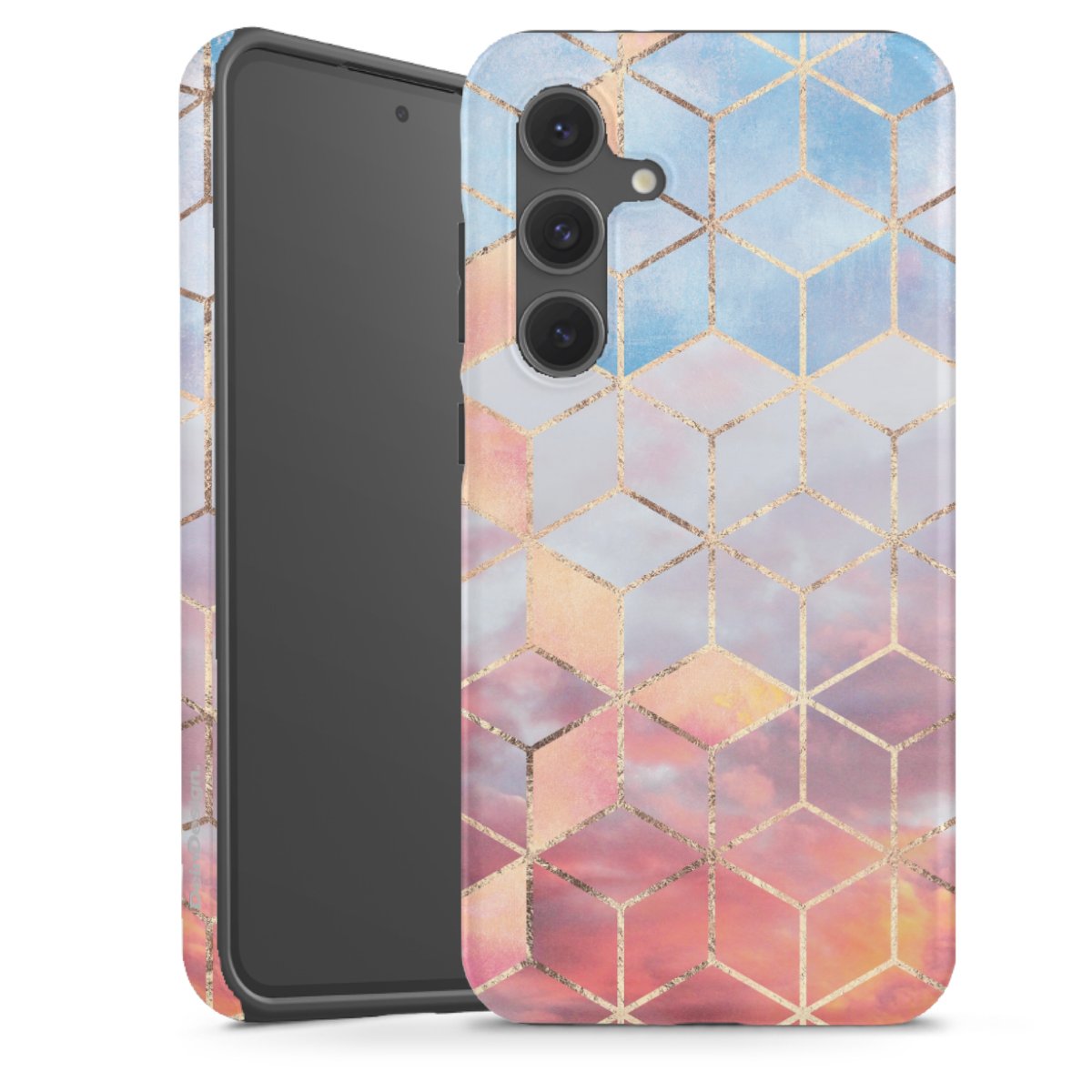 Print technology For our Tough Case we are using our specially advanced and longlasting sublimation print. This refined technology excels through its highquality, brilliant and pin-sharp print. The printable area covers the entire case: backside, frame and edges are fully printed. The silicone core remains unprinted. Choose one of our exklusive, pre-made shop designs or let your creativity shine and create your very own unique design with your pictures, overlays and text.