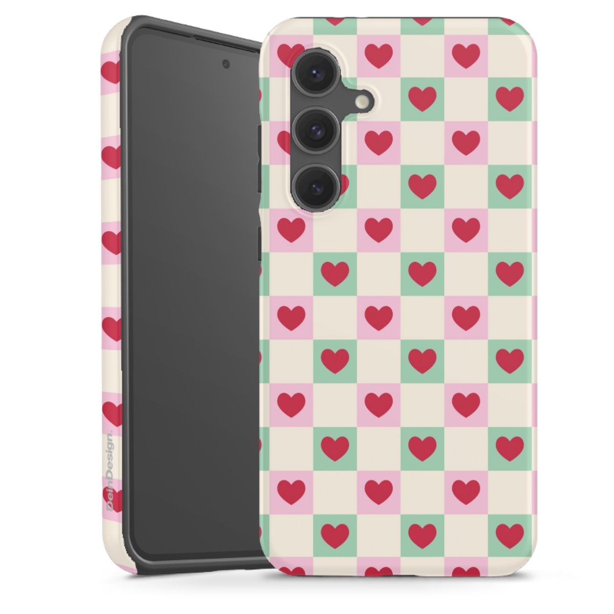 Product details Our most protective phone case combines the advantages of the Silicone and Premium Case: the flexible silicone core on the inside offers an extra shockabsorbing layer, protecting reliably against damages from dropping your phone. The longlasting, polycarbonate hard shell ensures additional stability and a brilliant print result. The surface of the 2,6 mm strong case feels smooth offering a comfortable grip. The case is available with a matt and glossy finish.