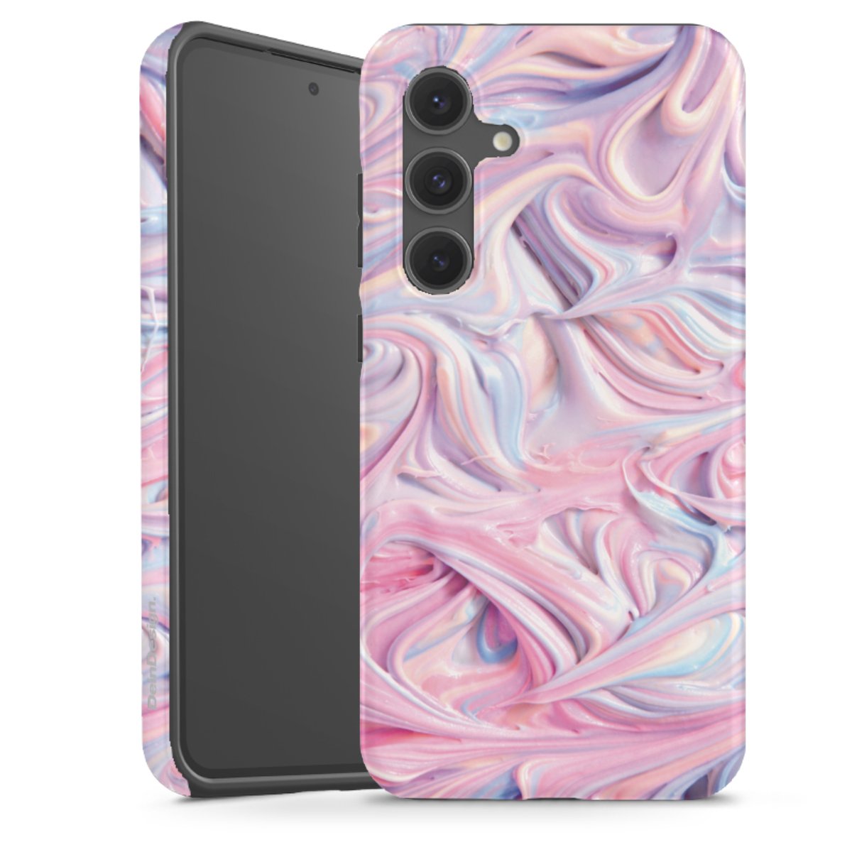 Print technology For our Tough Case we are using our specially advanced and longlasting sublimation print. This refined technology excels through its highquality, brilliant and pin-sharp print. The printable area covers the entire case: backside, frame and edges are fully printed. The silicone core remains unprinted. Choose one of our exklusive, pre-made shop designs or let your creativity shine and create your very own unique design with your pictures, overlays and text.