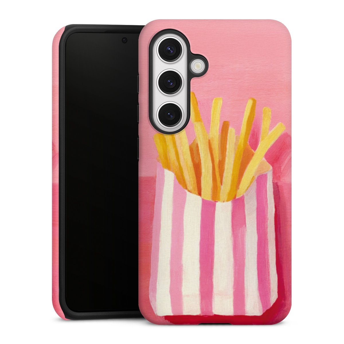 Product details Our most protective phone case combines the advantages of the Silicone and Premium Case: the flexible silicone core on the inside offers an extra shockabsorbing layer, protecting reliably against damages from dropping your phone. The longlasting, polycarbonate hard shell ensures additional stability and a brilliant print result. The surface of the 2,6 mm strong case feels smooth offering a comfortable grip. The case is available with a matt and glossy finish.