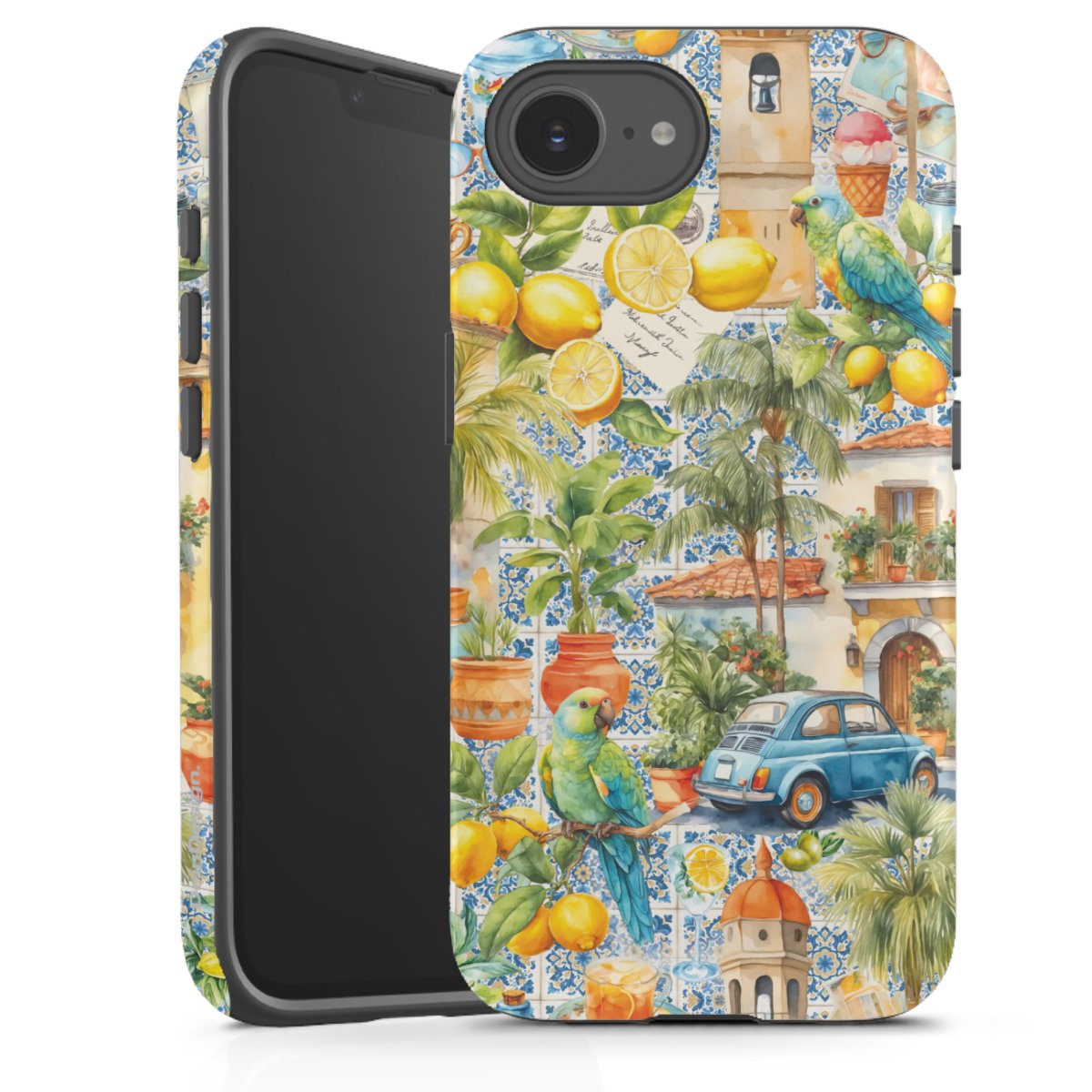 Product details Our most protective phone case combines the advantages of the Silicone and Premium Case: the flexible silicone core on the inside offers an extra shockabsorbing layer, protecting reliably against damages from dropping your phone. The longlasting, polycarbonate hard shell ensures additional stability and a brilliant print result. The surface of the 2,6 mm strong case feels smooth offering a comfortable grip. The case is available with a matt and glossy finish.