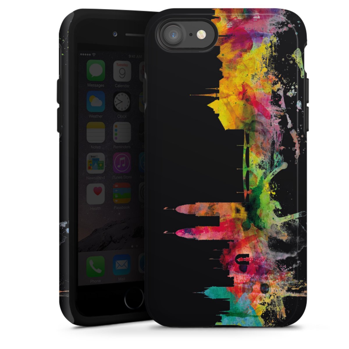 Product details Our most protective phone case combines the advantages of the Silicone and Premium Case: the flexible silicone core on the inside offers an extra shockabsorbing layer, protecting reliably against damages from dropping your phone. The longlasting, polycarbonate hard shell ensures additional stability and a brilliant print result. The surface of the 2,6 mm strong case feels smooth offering a comfortable grip. The case is available with a matt and glossy finish.