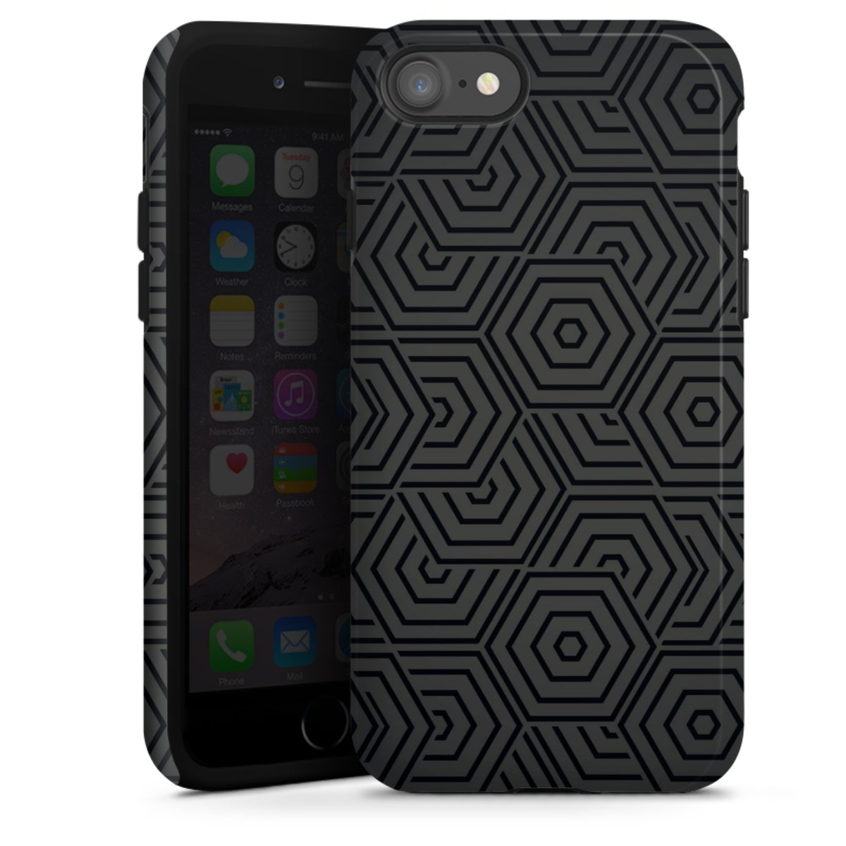 Product details Our most protective phone case combines the advantages of the Silicone and Premium Case: the flexible silicone core on the inside offers an extra shockabsorbing layer, protecting reliably against damages from dropping your phone. The longlasting, polycarbonate hard shell ensures additional stability and a brilliant print result. The surface of the 2,6 mm strong case feels smooth offering a comfortable grip. The case is available with a matt and glossy finish.