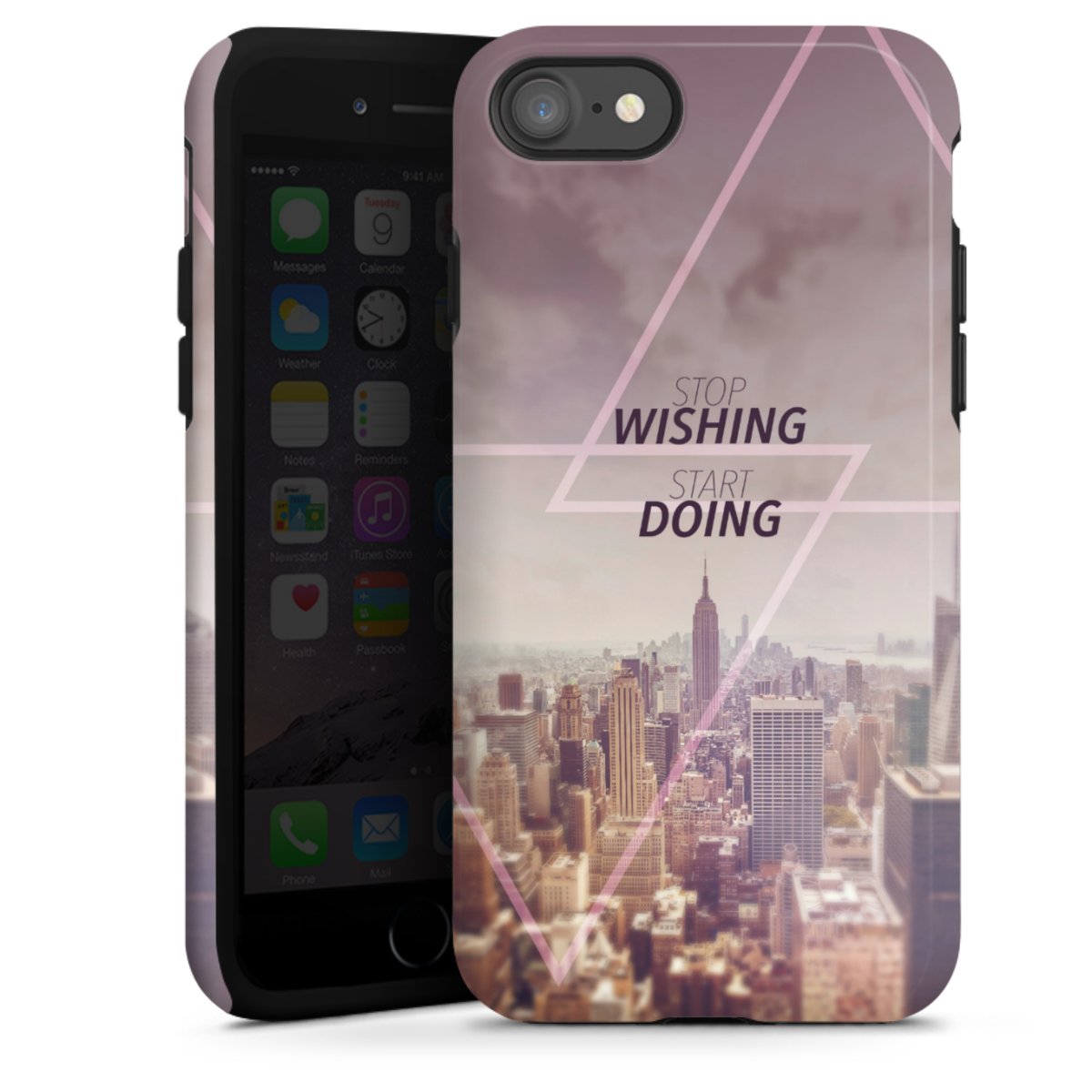 Product details Our most protective phone case combines the advantages of the Silicone and Premium Case: the flexible silicone core on the inside offers an extra shockabsorbing layer, protecting reliably against damages from dropping your phone. The longlasting, polycarbonate hard shell ensures additional stability and a brilliant print result. The surface of the 2,6 mm strong case feels smooth offering a comfortable grip. The case is available with a matt and glossy finish.