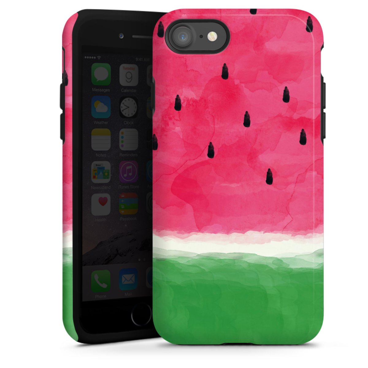 Product details Our most protective phone case combines the advantages of the Silicone and Premium Case: the flexible silicone core on the inside offers an extra shockabsorbing layer, protecting reliably against damages from dropping your phone. The longlasting, polycarbonate hard shell ensures additional stability and a brilliant print result. The surface of the 2,6 mm strong case feels smooth offering a comfortable grip. The case is available with a matt and glossy finish.