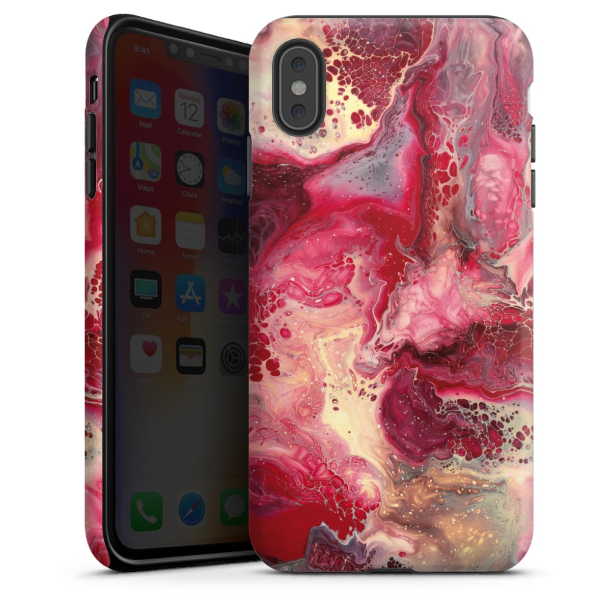 Product details Our most protective phone case combines the advantages of the Silicone and Premium Case: the flexible silicone core on the inside offers an extra shockabsorbing layer, protecting reliably against damages from dropping your phone. The longlasting, polycarbonate hard shell ensures additional stability and a brilliant print result. The surface of the 2,6 mm strong case feels smooth offering a comfortable grip. The case is available with a matt and glossy finish.