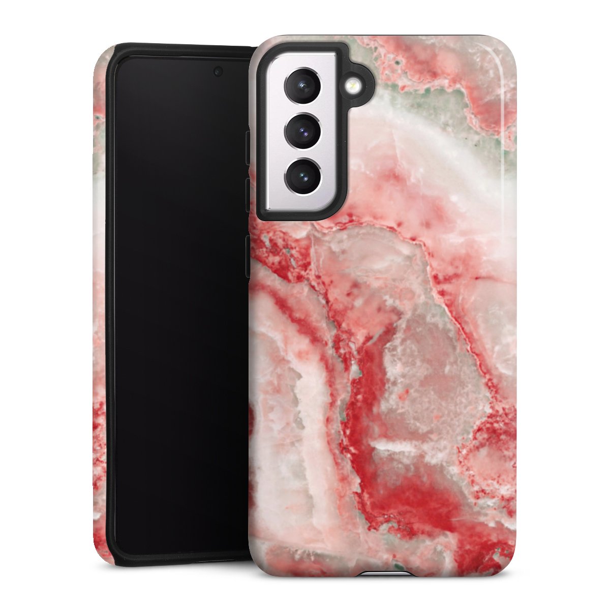 Product details Our most protective phone case combines the advantages of the Silicone and Premium Case: the flexible silicone core on the inside offers an extra shockabsorbing layer, protecting reliably against damages from dropping your phone. The longlasting, polycarbonate hard shell ensures additional stability and a brilliant print result. The surface of the 2,6 mm strong case feels smooth offering a comfortable grip. The case is available with a matt and glossy finish.