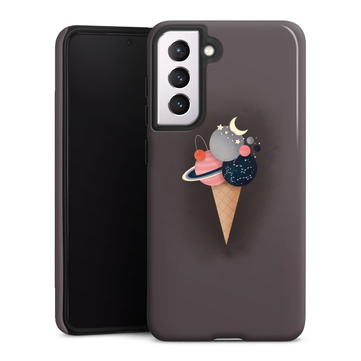 Product details Our most protective phone case combines the advantages of the Silicone and Premium Case: the flexible silicone core on the inside offers an extra shockabsorbing layer, protecting reliably against damages from dropping your phone. The longlasting, polycarbonate hard shell ensures additional stability and a brilliant print result. The surface of the 2,6 mm strong case feels smooth offering a comfortable grip. The case is available with a matt and glossy finish.