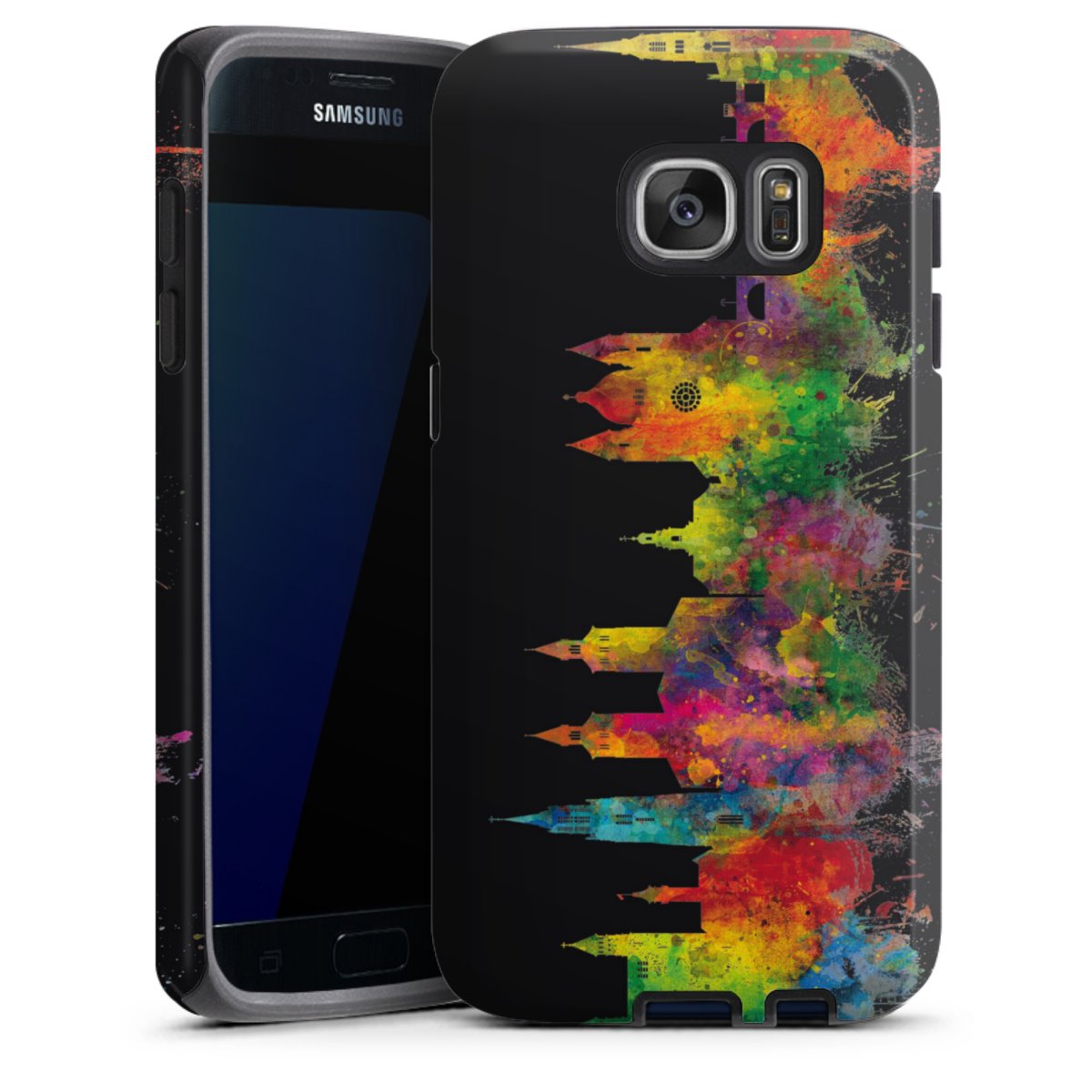 Product details Our most protective phone case combines the advantages of the Silicone and Premium Case: the flexible silicone core on the inside offers an extra shockabsorbing layer, protecting reliably against damages from dropping your phone. The longlasting, polycarbonate hard shell ensures additional stability and a brilliant print result. The surface of the 2,6 mm strong case feels smooth offering a comfortable grip. The case is available with a matt and glossy finish.