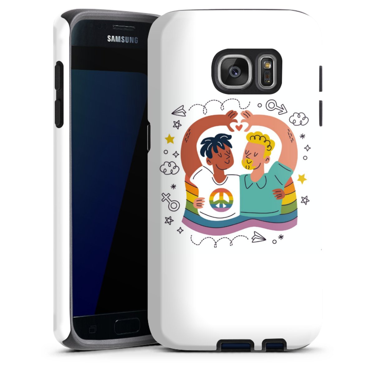 Product details Our most protective phone case combines the advantages of the Silicone and Premium Case: the flexible silicone core on the inside offers an extra shockabsorbing layer, protecting reliably against damages from dropping your phone. The longlasting, polycarbonate hard shell ensures additional stability and a brilliant print result. The surface of the 2,6 mm strong case feels smooth offering a comfortable grip. The case is available with a matt and glossy finish.