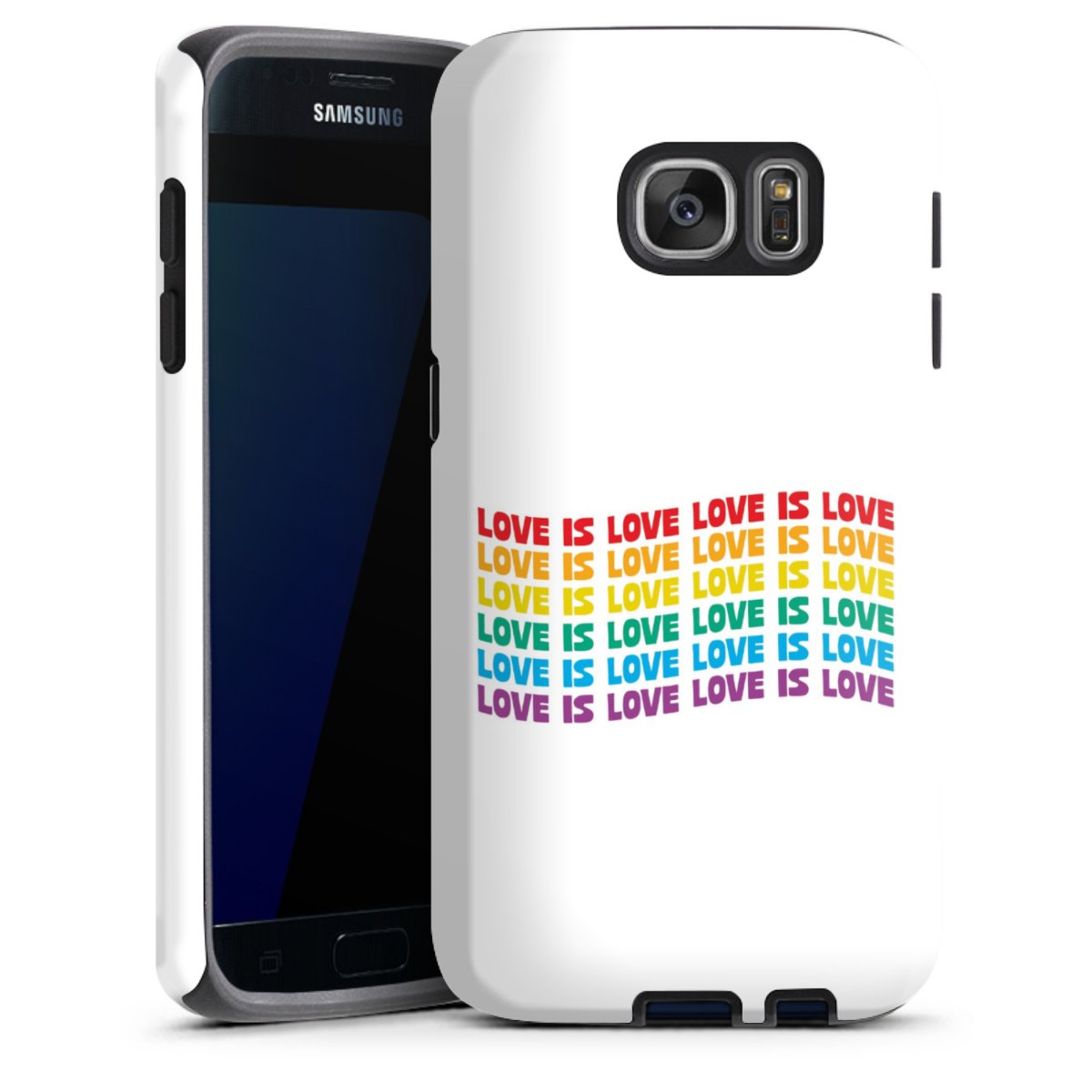 Product details Our most protective phone case combines the advantages of the Silicone and Premium Case: the flexible silicone core on the inside offers an extra shockabsorbing layer, protecting reliably against damages from dropping your phone. The longlasting, polycarbonate hard shell ensures additional stability and a brilliant print result. The surface of the 2,6 mm strong case feels smooth offering a comfortable grip. The case is available with a matt and glossy finish.