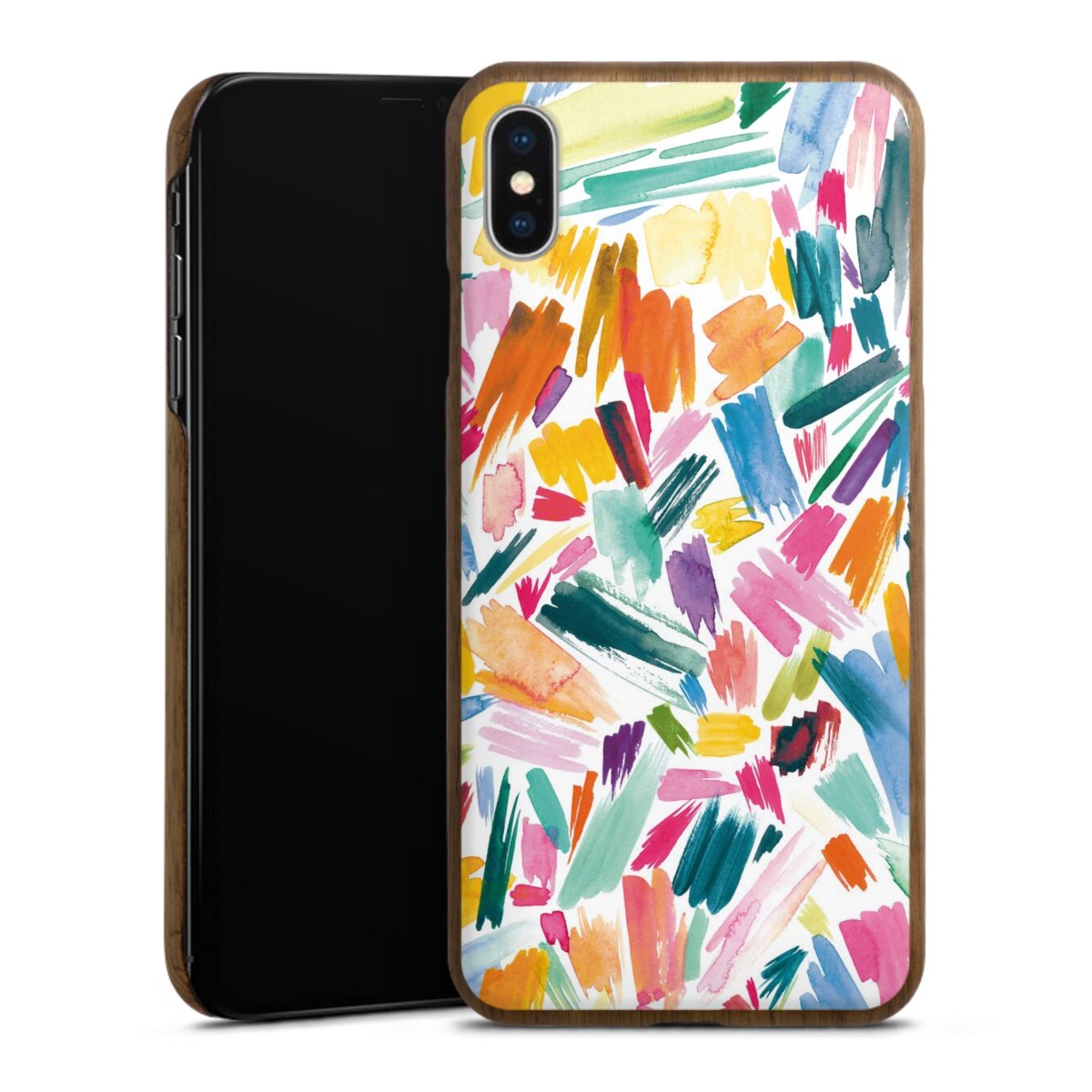 Print technology For our Wooden Slim Case we are using our advanced direct printing technology. The backside is fully printabale, the frame is left unprinted. You can order the phone case without print, printed completely or also with a partial print. Choose one of our exklusive, pre-made shop designs or let your creativity shine and create your very own unique design with your pictures, overlays and text.