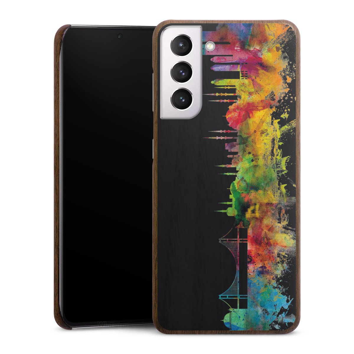 Print technology For our Wooden Slim Case we are using our advanced direct printing technology. The backside is fully printabale, the frame is left unprinted. You can order the phone case without print, printed completely or also with a partial print. Choose one of our exklusive, pre-made shop designs or let your creativity shine and create your very own unique design with your pictures, overlays and text.