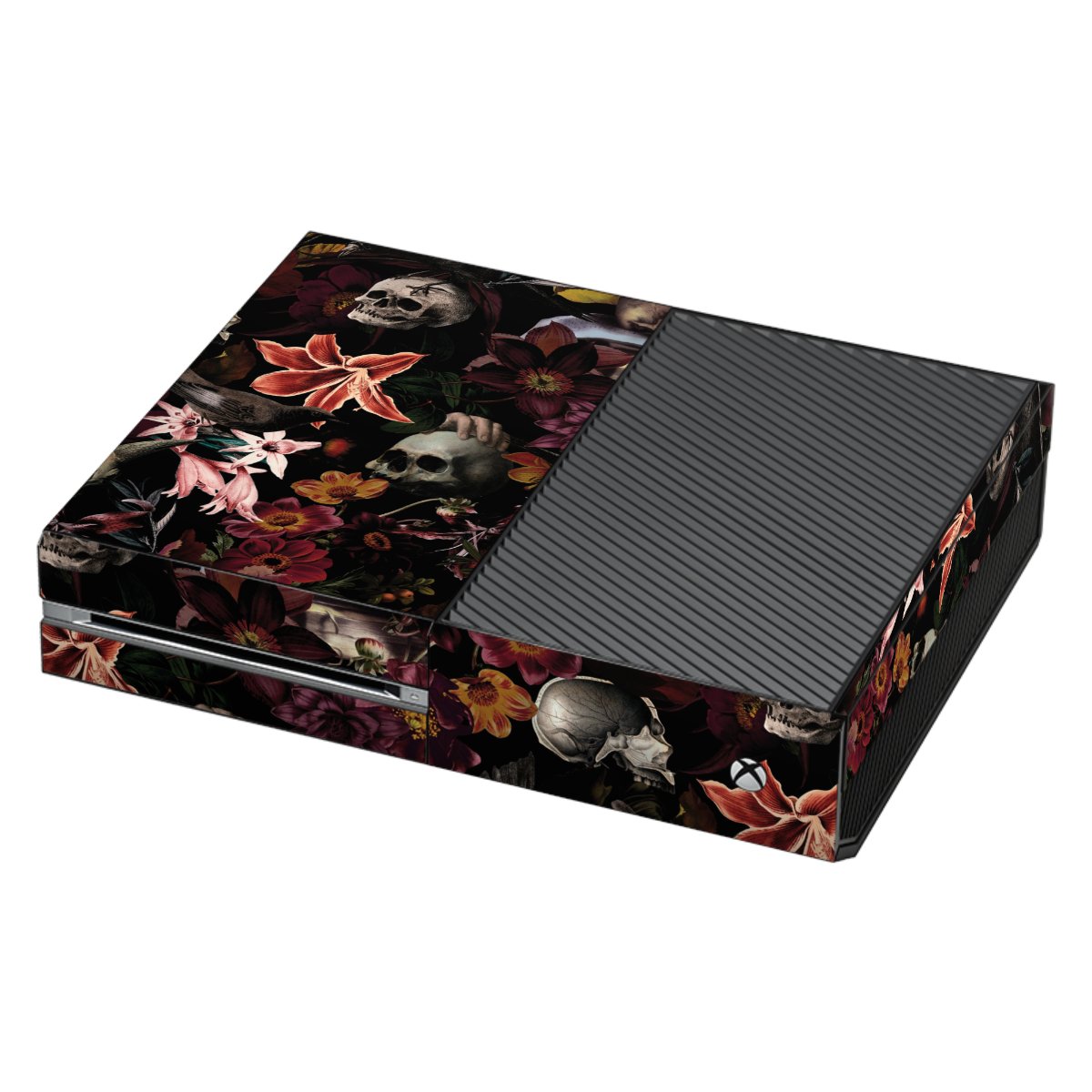 Skulls and Flowers on Dark Background