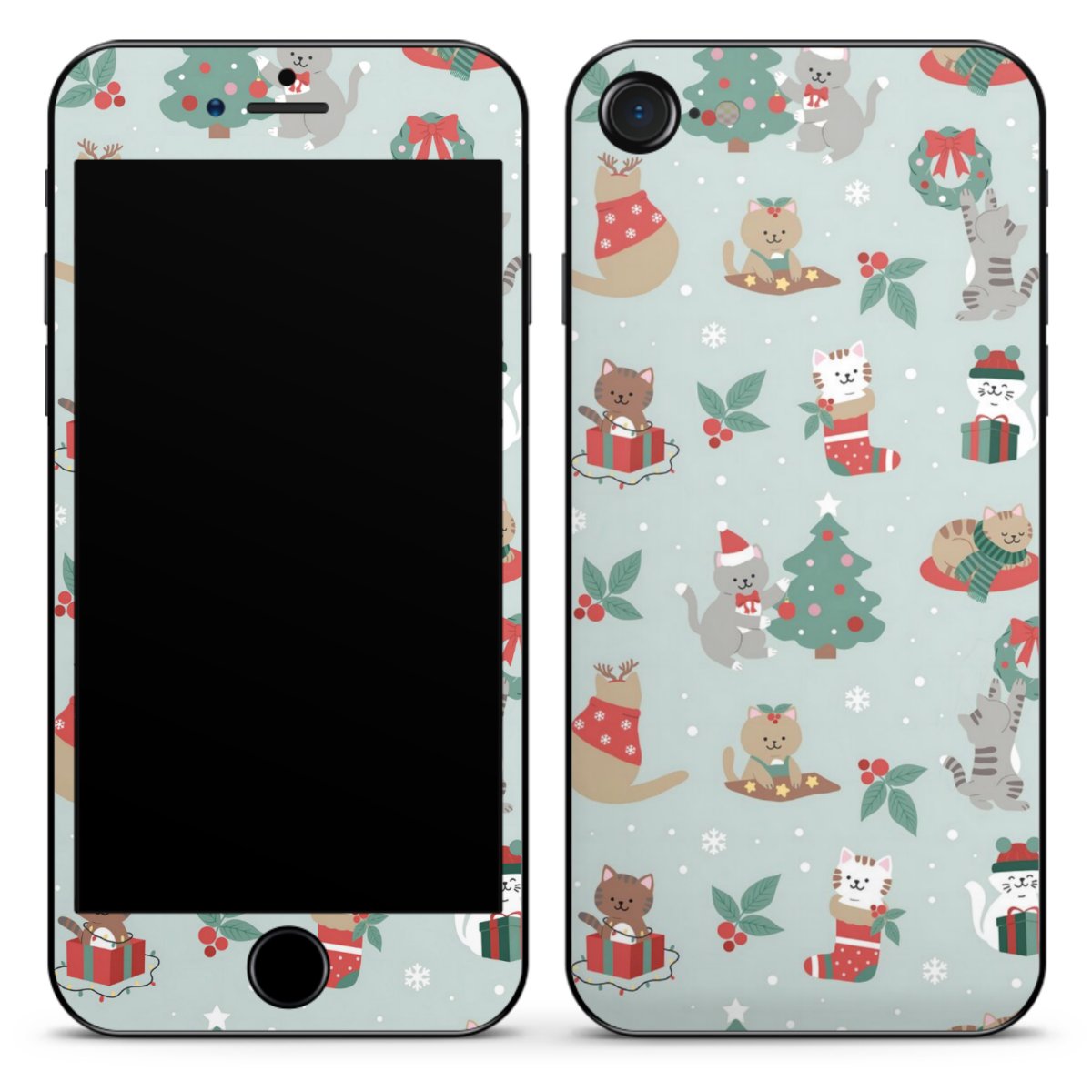 Cute Winter Wonderland Christmas Festive Cats on Teal