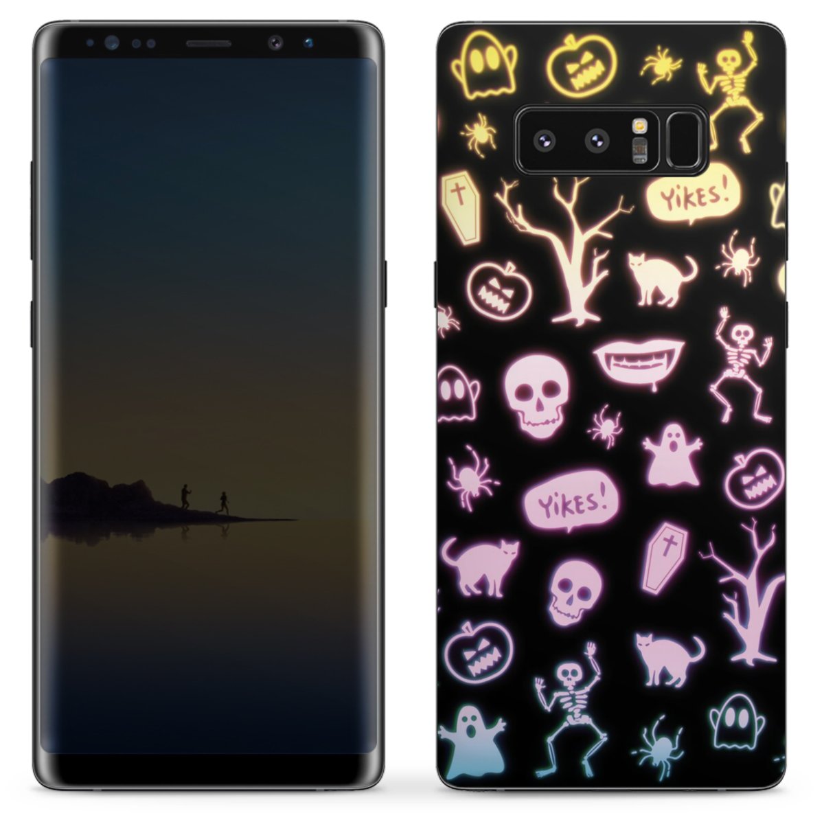 Neon Halloween Stickers Black Background