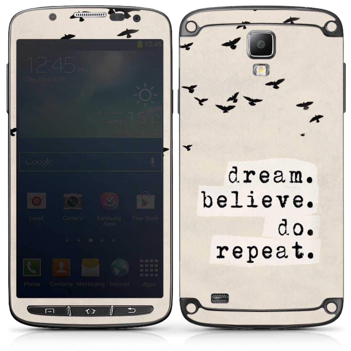 The longlasting premium vinyl foil is reinforced with a matt laminating coat protecting your phone securely against scratches. The premium foil is ultra-thin and doesn't add any bulk, no matter if attached to the front- or backside of your phone. The base colour of the foil is white.