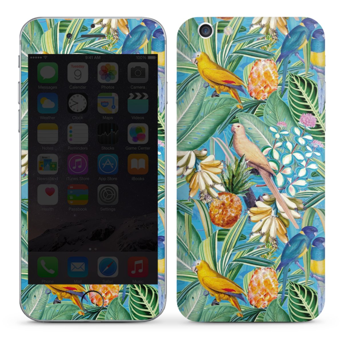 Tropical Parrots on Blue Wallpaper