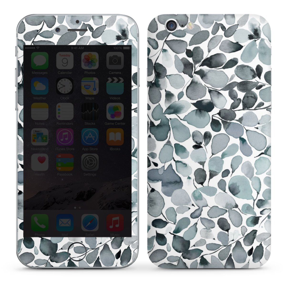 Eucalyptus Watercolor Leaves Grey
