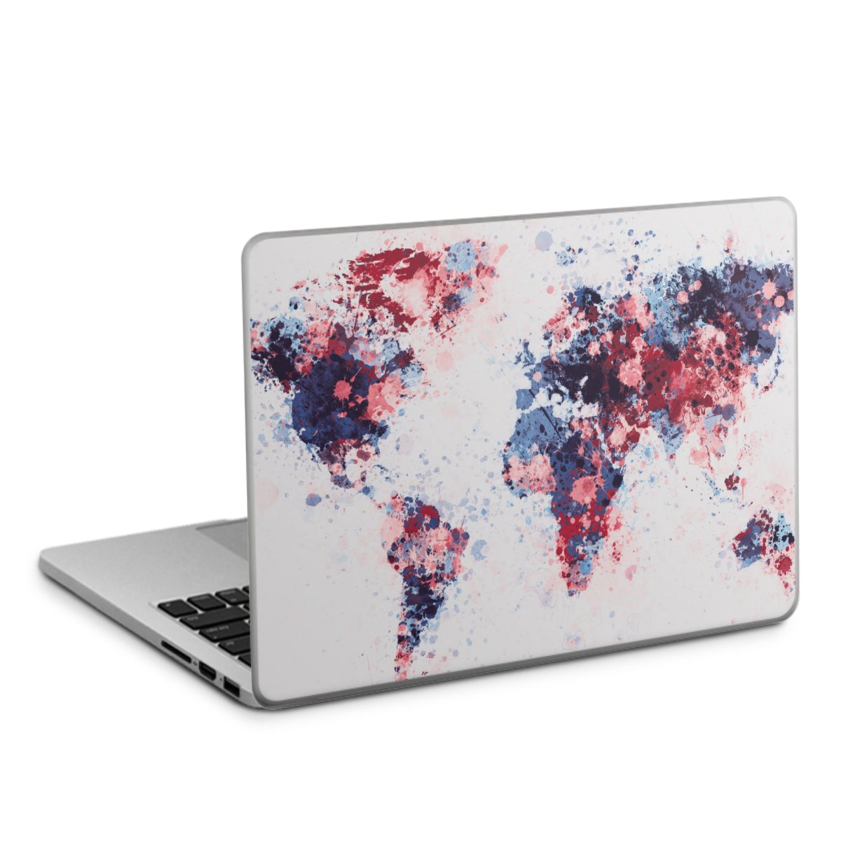 World Map Paint Splashes Blue Red