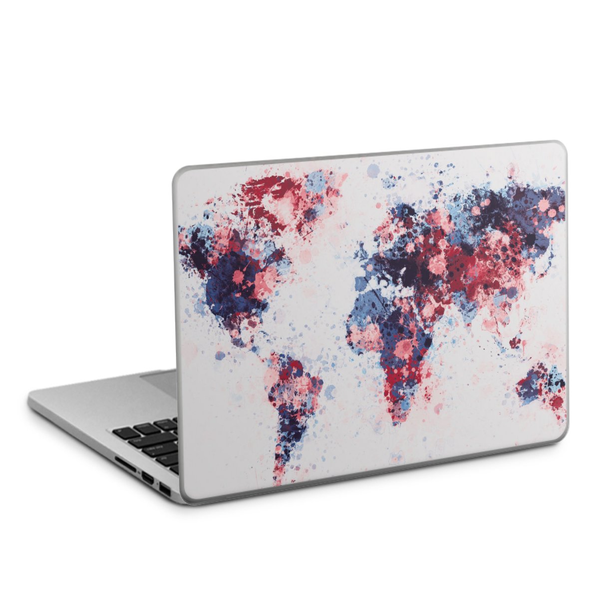 World Map Paint Splashes Blue Red