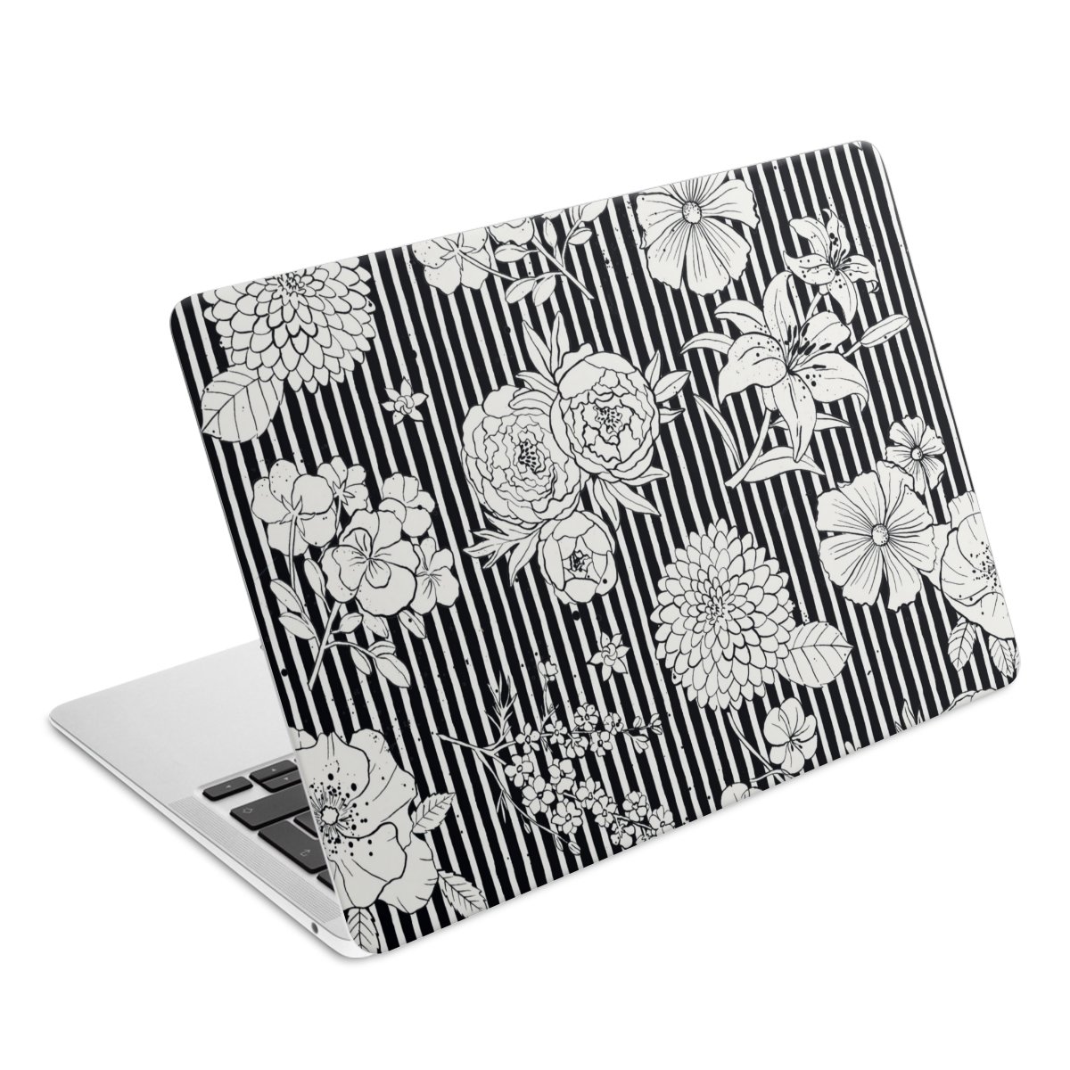 Flowers and Stripes Black and White