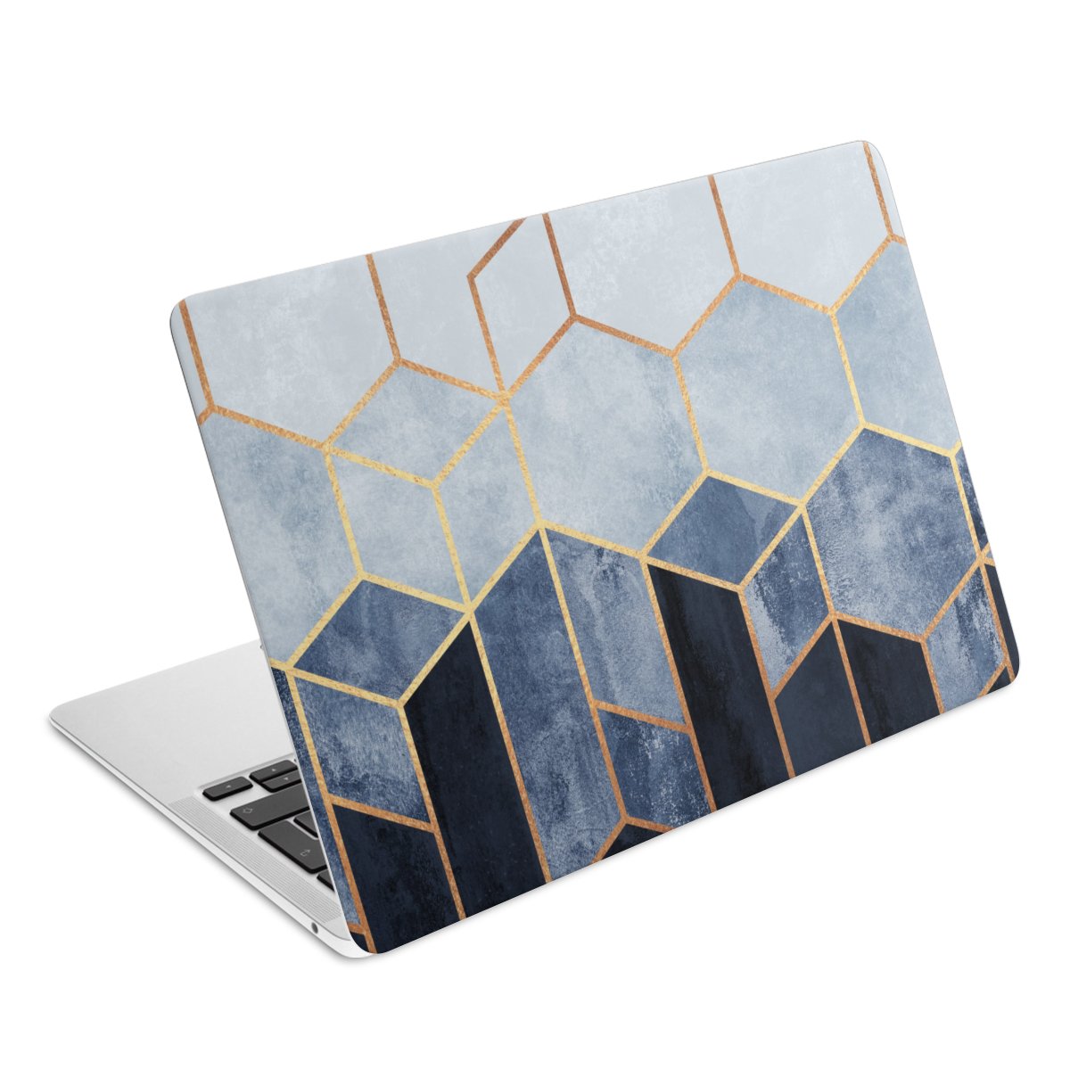 Soft Blue Hexagons Gold Print