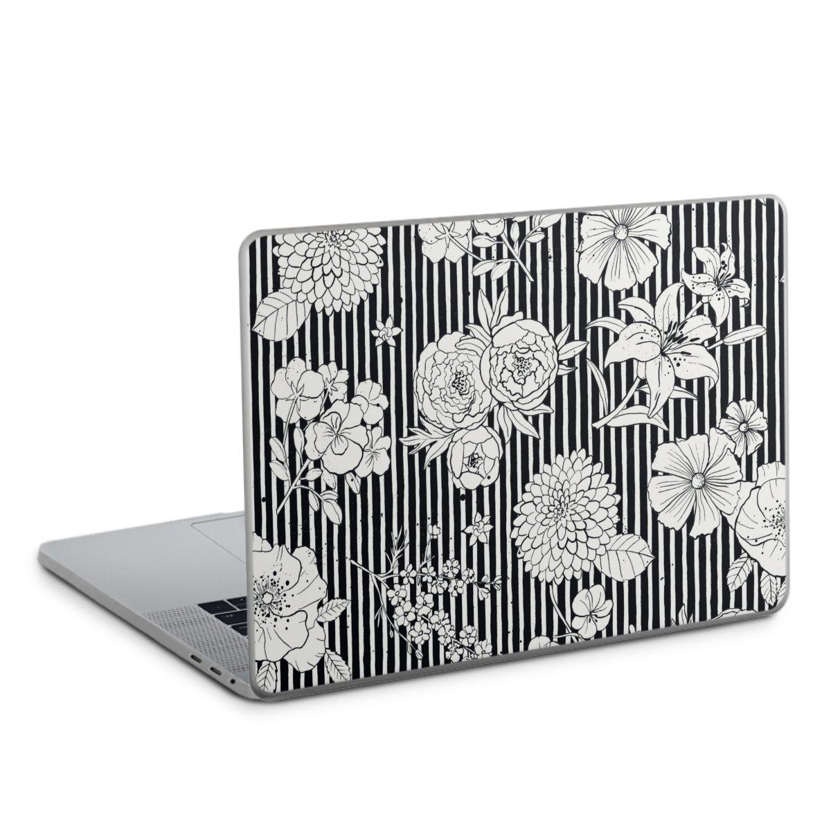 Flowers and Stripes Black and White