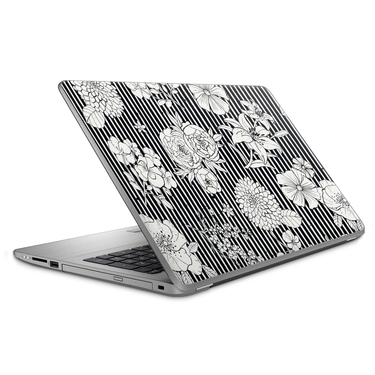 Flowers and Stripes Black and White