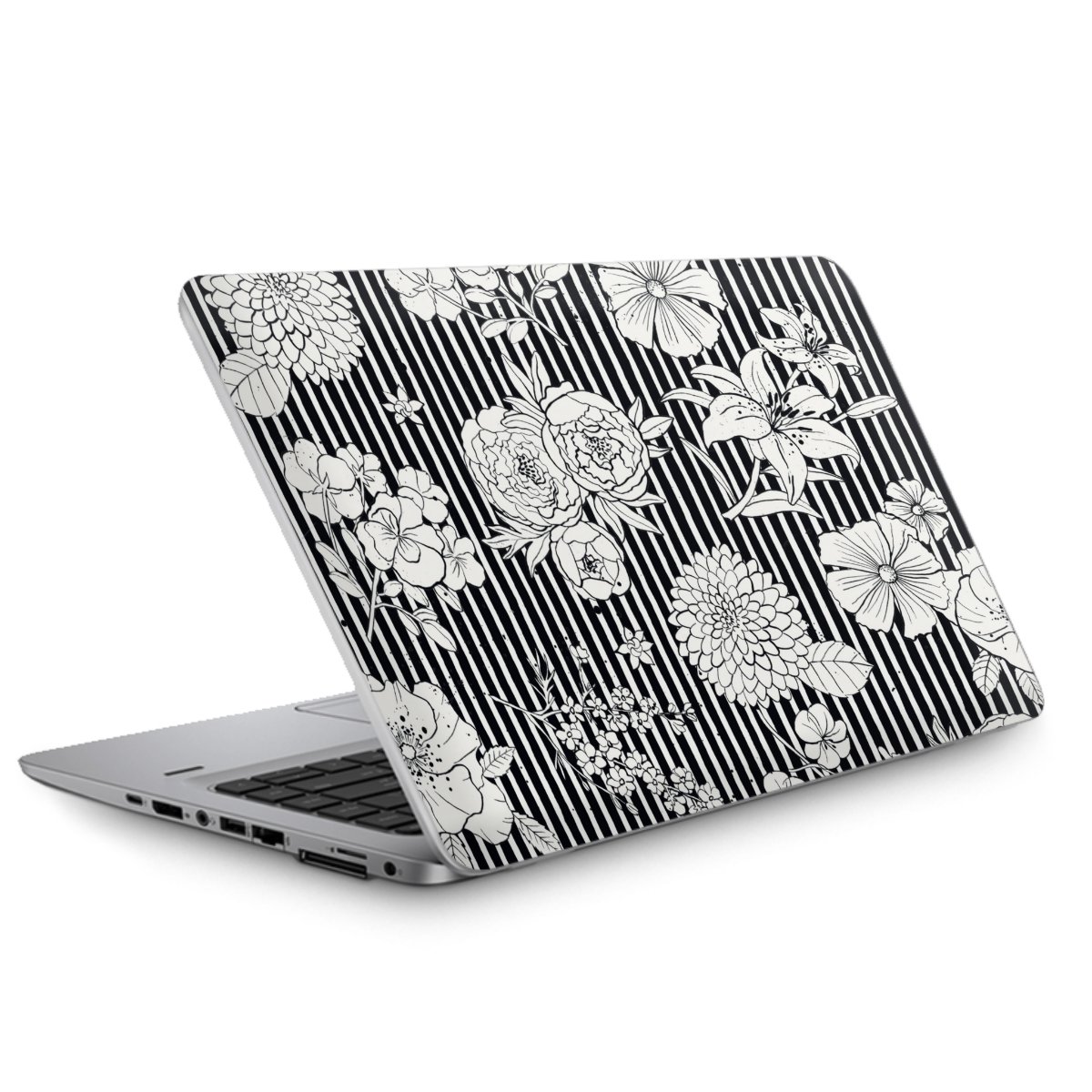 Flowers and Stripes Black and White