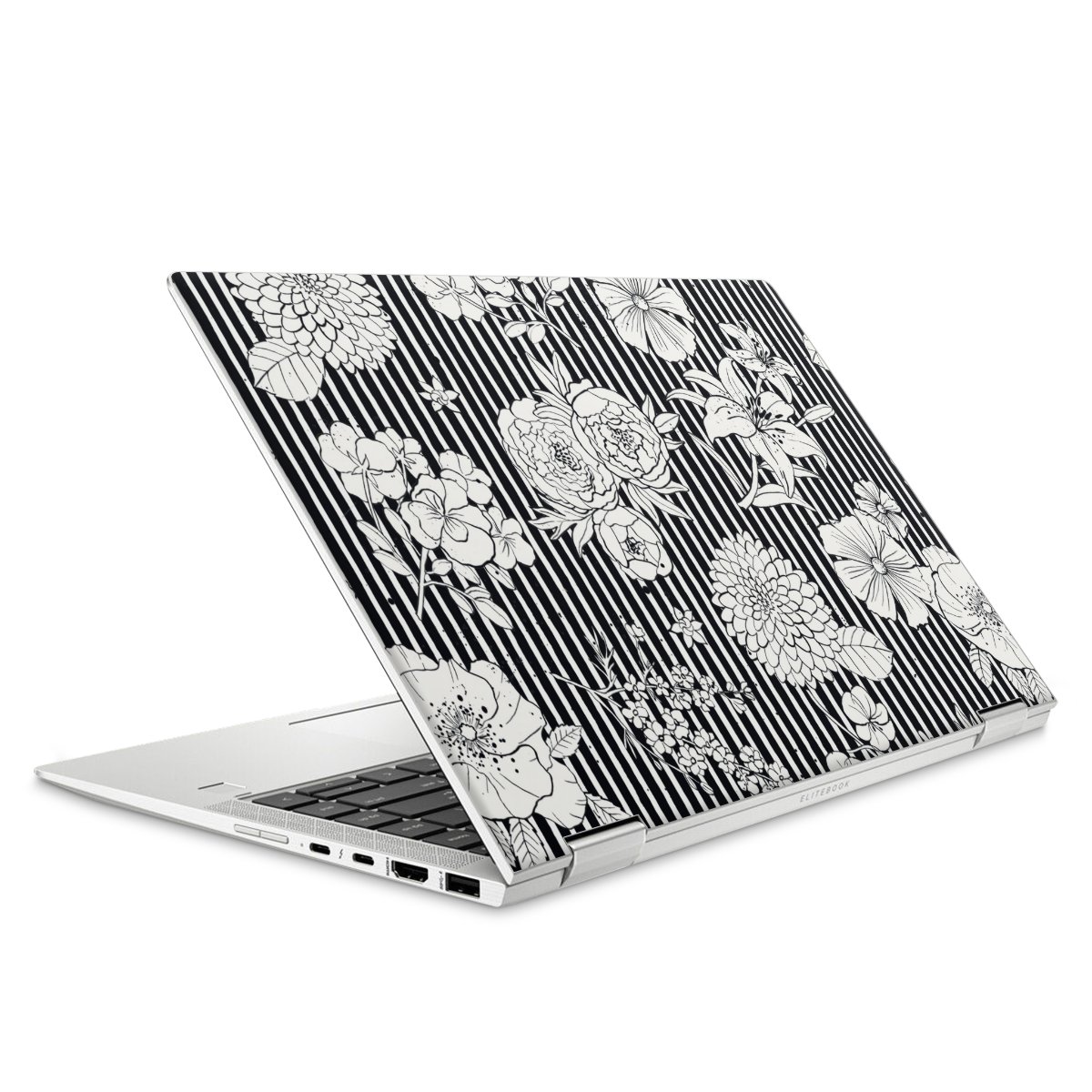 Flowers and Stripes Black and White