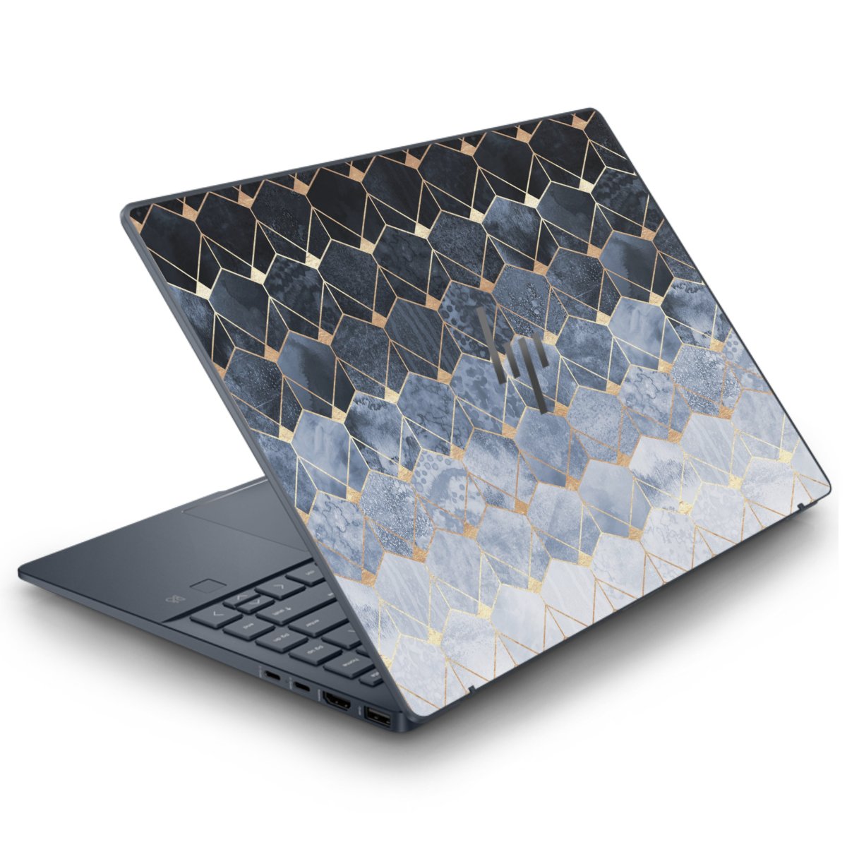 Blue Hexagons And Diamonds Gold Print