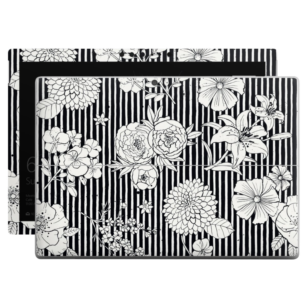 Flowers and Stripes Black and White