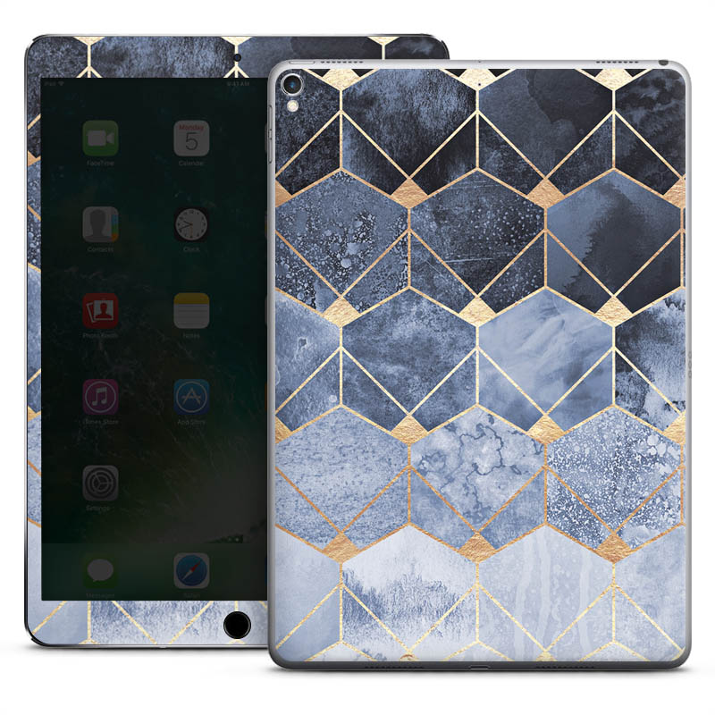 Blue Hexagons And Diamonds Gold Print
