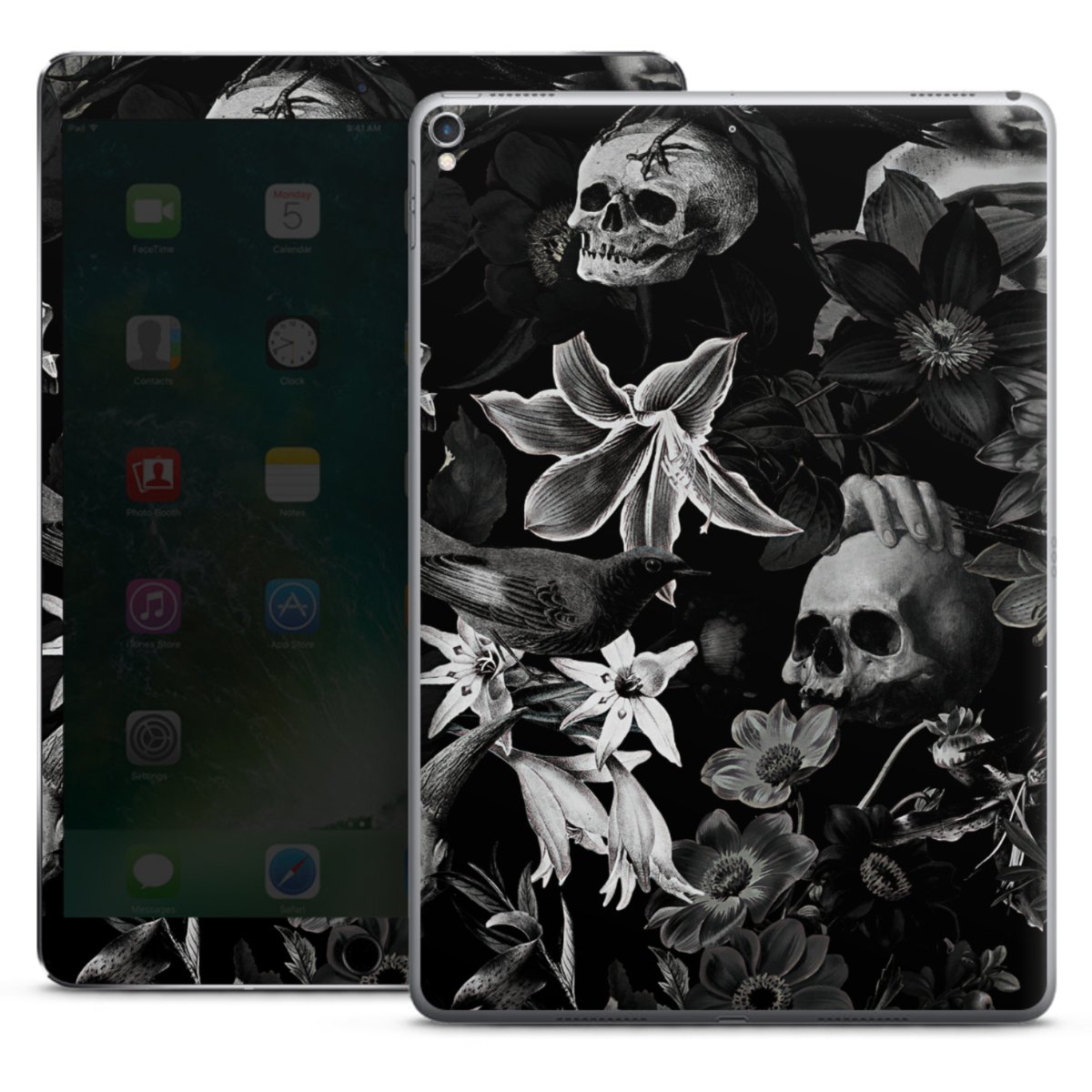Skulls and Flowers on Black Background