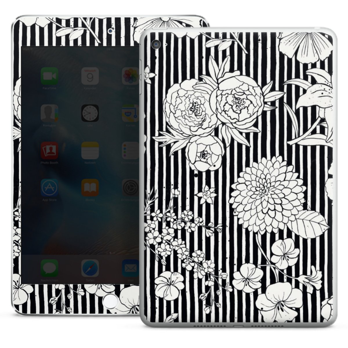 Flowers and Stripes Black and White