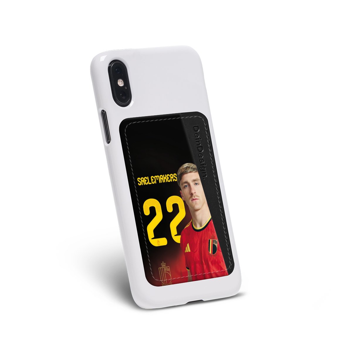 We advise to clean your phone case with a soft cloth and a mild detergent first. On the back of the card holder you will find an adhesive strip. Pull off the protective film and press the card holder firmly against the phone case – that’s it!