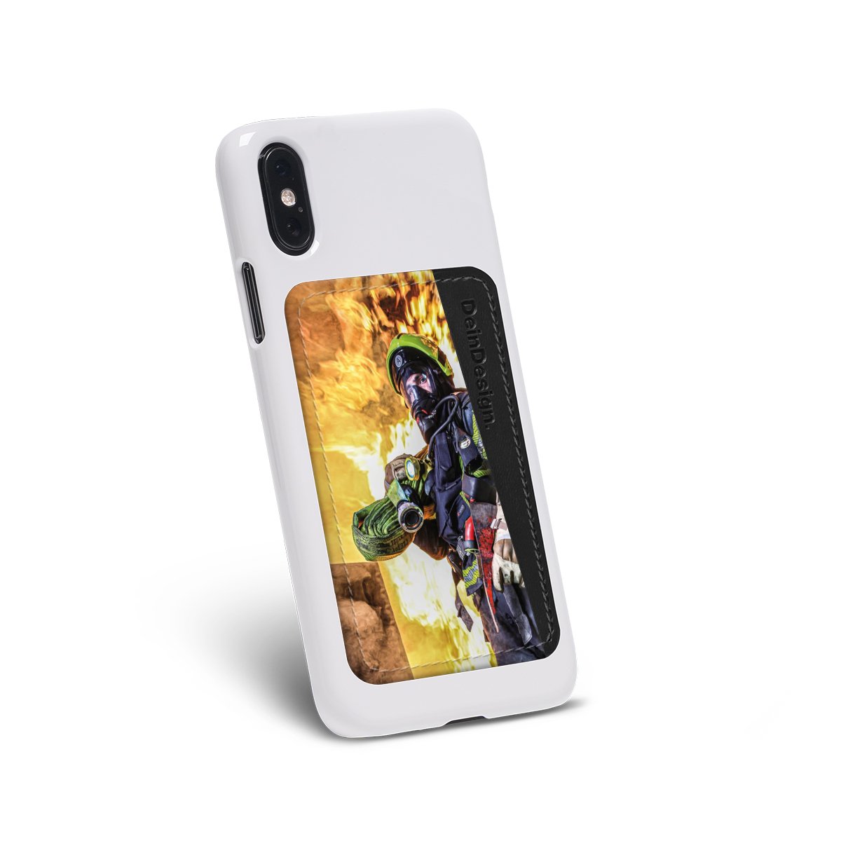We advise to clean your phone case with a soft cloth and a mild detergent first. On the back of the card holder you will find an adhesive strip. Pull off the protective film and press the card holder firmly against the phone case – that’s it!