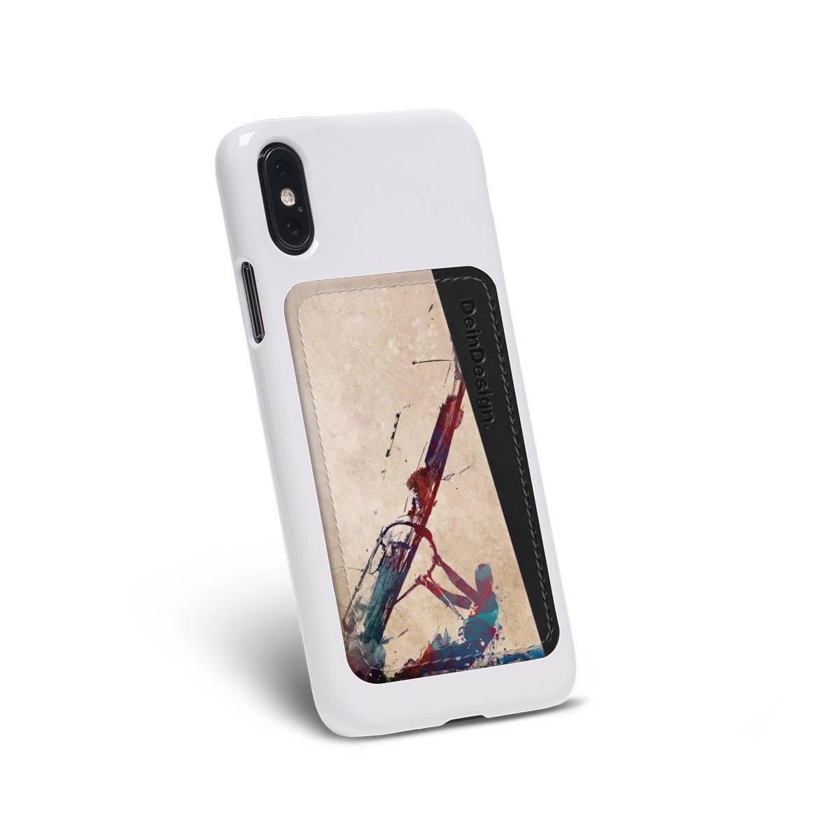 We advise to clean your phone case with a soft cloth and a mild detergent first. On the back of the card holder you will find an adhesive strip. Pull off the protective film and press the card holder firmly against the phone case – that’s it!