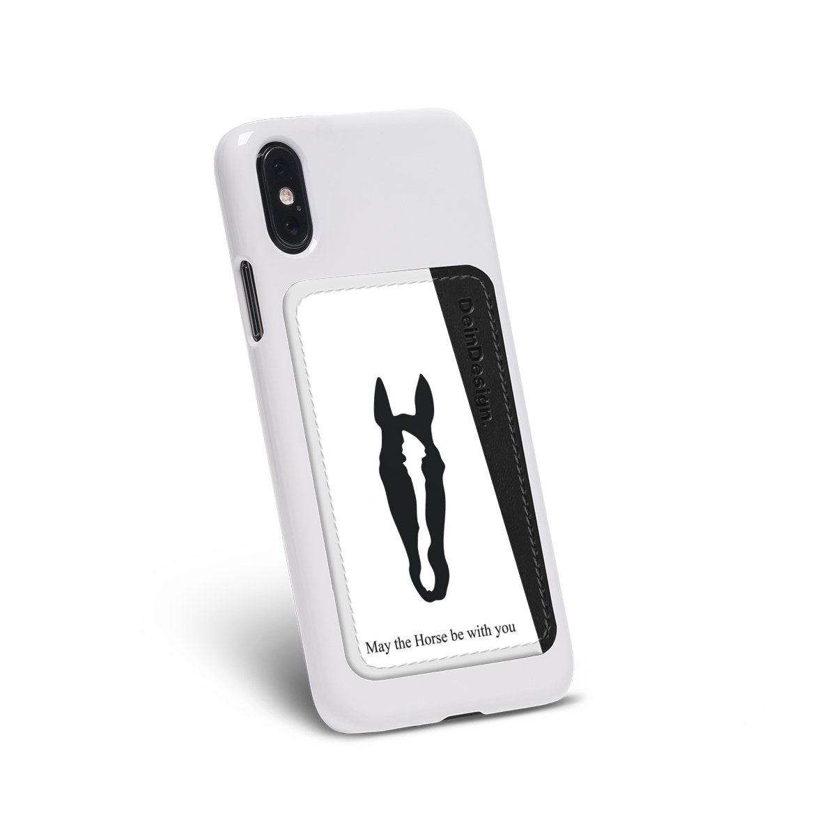We advise to clean your phone case with a soft cloth and a mild detergent first. On the back of the card holder you will find an adhesive strip. Pull off the protective film and press the card holder firmly against the phone case – that’s it!