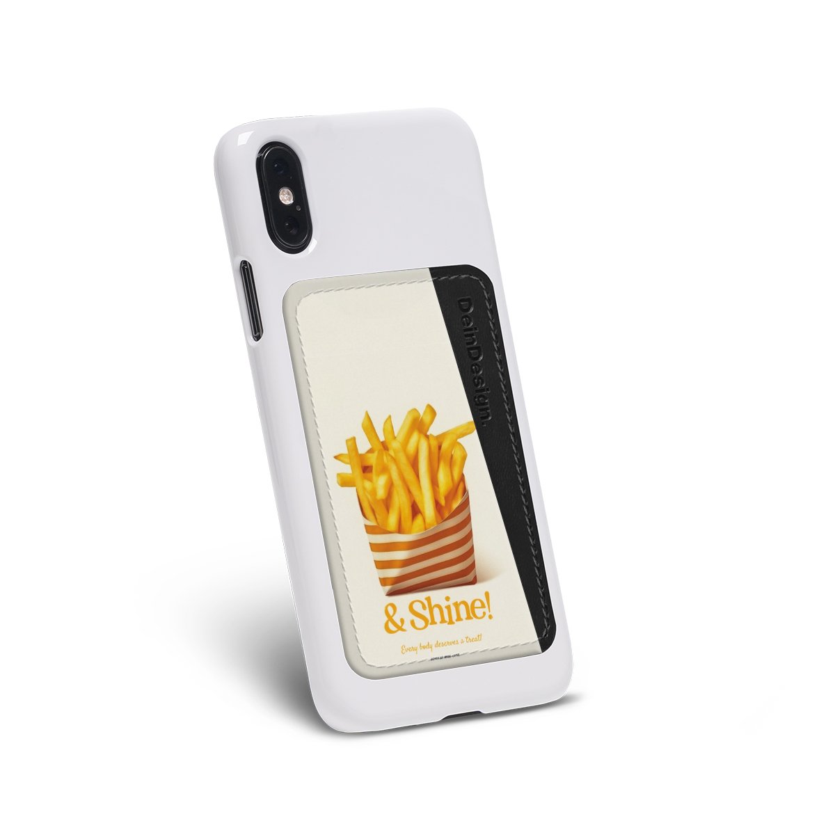 We advise to clean your phone case with a soft cloth and a mild detergent first. On the back of the card holder you will find an adhesive strip. Pull off the protective film and press the card holder firmly against the phone case – that’s it!